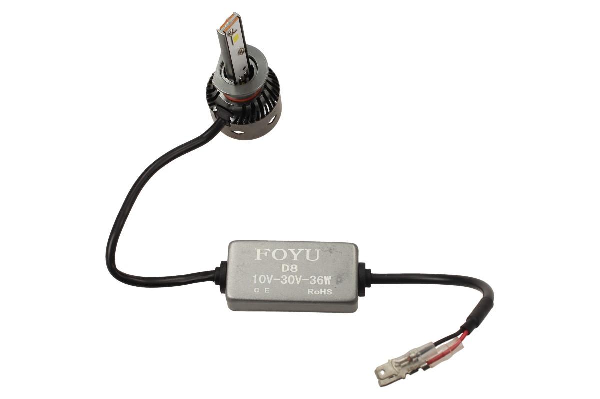 Sada dvou LED autožárovek FOYU D8 H1 CANBUS 10-30V 36W Vám poskytnou jasné bílé světlo a velmi dlouhou životnost a to i při otřesech vozu, častém zapínání a vypínání, což je velká výhoda oproti klasickým žárovkám. Žárovky jsou vyrobeny tak, aby jejich instalace nebyla náročná. Žárovky nemají homologaci pro tuzemskou komunikaci - určeno k rekreačně sportovním účelům.