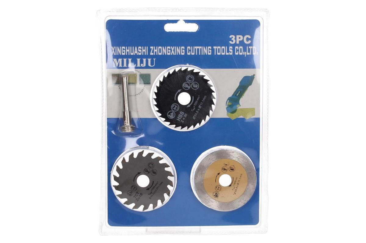 Pilové kotouče vysokorychlostní 3ks pro minivrtačky a minifrézy na řezání a dělení kovů, dlaždic, desek plošných spojů, hliníku, dřeva a mnoha dalších materiálů v široké škále tvrdosti. V sadě naleznete tři vysokorychlostní kotouče a jednu univerzální stopku pro jejich upnutí.