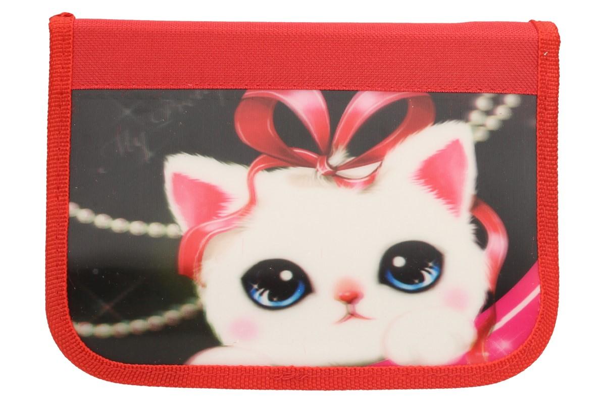 Kompletně vybavený školní penál s 3D obrázkem kočky potěší každého školáka. Jednopatrový penál má zavírání na zip a obsahuje kompletní 11ti dílnou výbavu, kterou žák bude ve škole potřebovat. V penálu naleznete pravítko, ořezávátko, gumu, tužku, kuličkové pero a 6 pastelek. Když škola zavolá, žádný batoh nebo taška se bez této pomůcky neobejde.