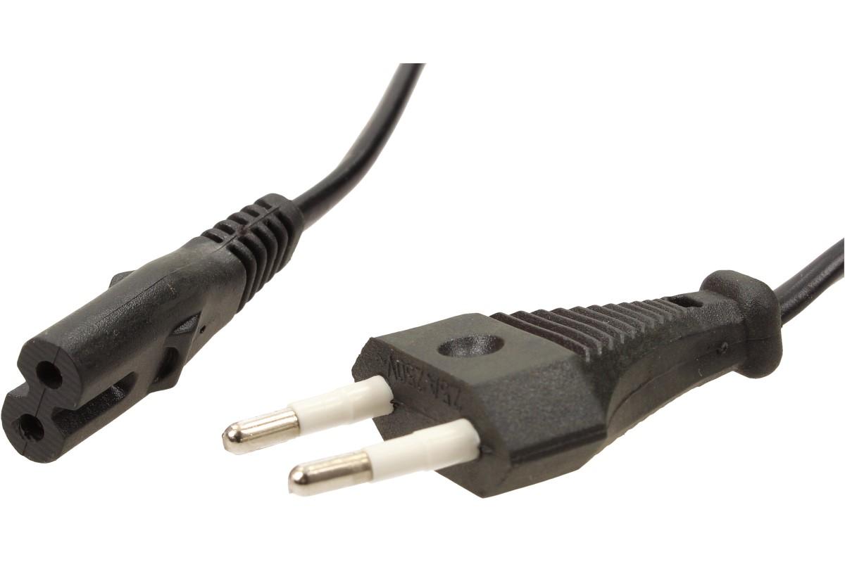 Napájecí síťový 2pinový kabel je zakončený koncem v podobě ležaté osmičky. Z tohoto kabelu se stala nehynoucí klasika pro napájení mnoho elektrických spotřebičů. Potřebujete-li zapojit nějaké zařízení s konektorem IEC320 C8, toto je ten správný kabel pro Vás. Najdete jej na nejrůznější audio a video technice nebo třeba na kuchyňských spotřebičích. Určený pro napětí max. 250 V (standardní 220 V napájecí síť). Proudové zatížení může činit až 10 A. Vhodný pro notebooky, délka 1,5 metru.
