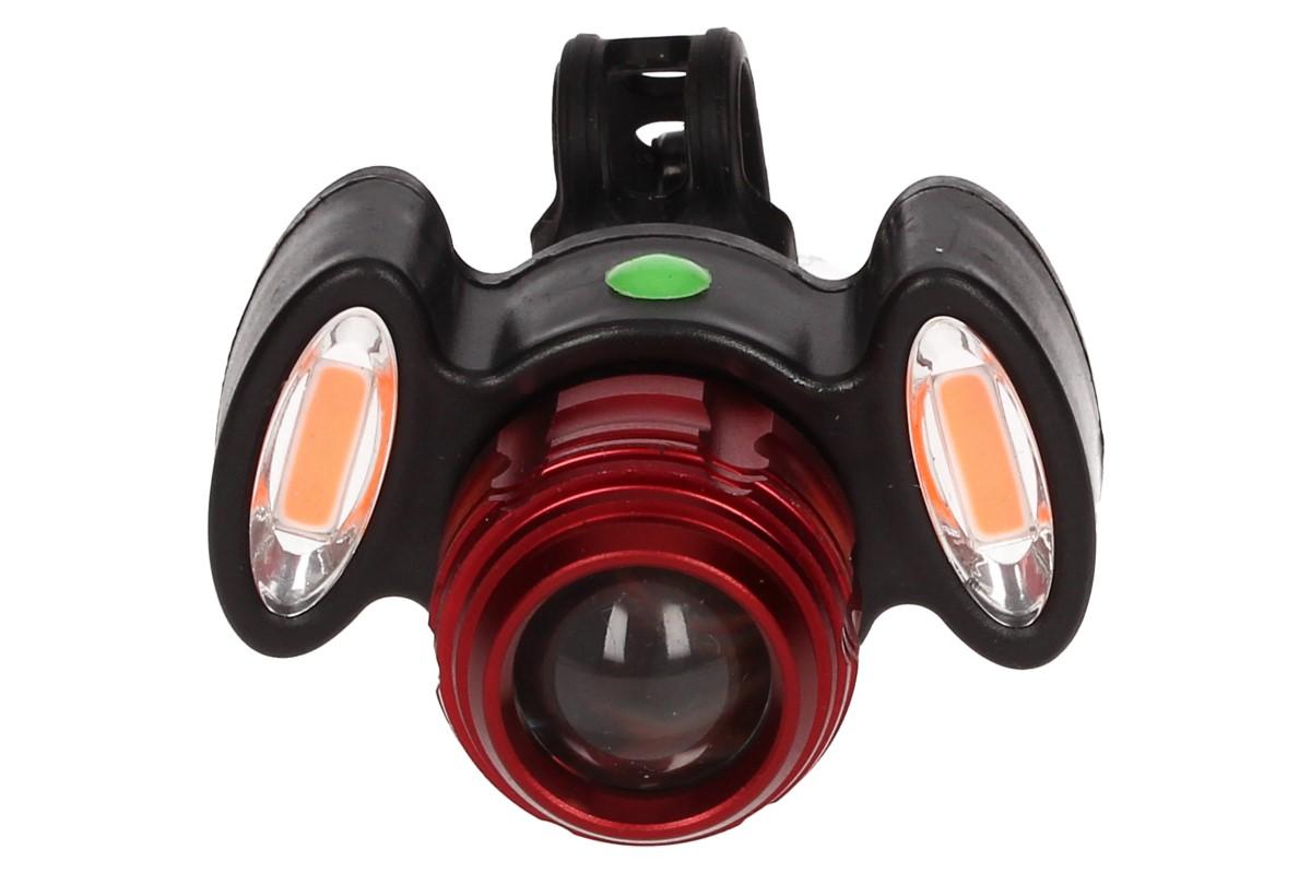 Univerzální LED světlo na kolo:Jednoduché a univerzální připevnění.Kvalitní zpracování. Je unikátní svými výkonnými LED diodami.4 modely osvícení! Můžete jej namontovat na řídítka, nebo i pod sedačku. Světlo se připevní gumovým páskem, který se přizpůsobí průměru trubky sedla/řídítek. Unikátní LED zárovky s životností 100 000 hodin. Světlo může svítit jasně zářivým a nastavitelným bílým světlem(prostřední čočka), nebo červeným zářivým světlem(krajní čočky) či obojí najednou. Energii zajištuje lithiová baterie zabudovaná v pevném těle, která se nabíjí USB kabelem, jež je součástí balení.