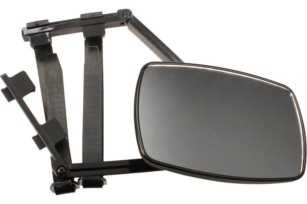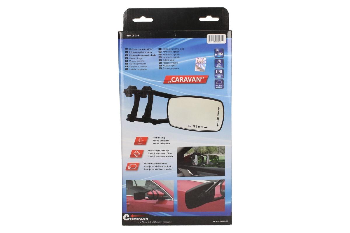 Univerzální přídavné zpětné zrcátko s nastavitelným úhlem pomocí všestranného kloubu je vhodné téměř pro všechny typy vozidel. Připevňuje se pomocí gumových upínačů na tvarově nastavitelných ramenech. Toto zrcátko se stane ideálním pomocníkem při jízde s přívěsem, nebo karavanem a lze jej použít na levou i pravou stranu vozidla. Při použití nijak neomezuje funkci klasického zrcátka.