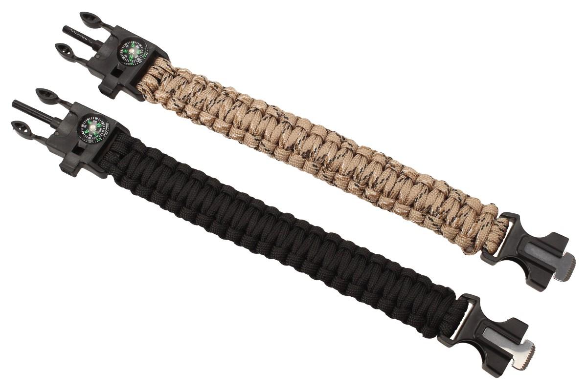 Představujeme vám zcela nový a unikátní náramek s pevnou a stabilní sponou, který je stvořen pro cestovatele, na dovolenou, nebo na túry! Náramek není v žádnem případě obyčejný! Je spleten z nylonové parašutistické šňůry, která se může rozplést. Náramek obsahuje přesný kompas, píšťalku, ocílku a samozřejmě i křesadlo- při třením křesadla a ocílky začnou létat jiskry na oheň. Perfektní a praktický doplněk pro cestovatele. Délka 24cm, šířka 2cm