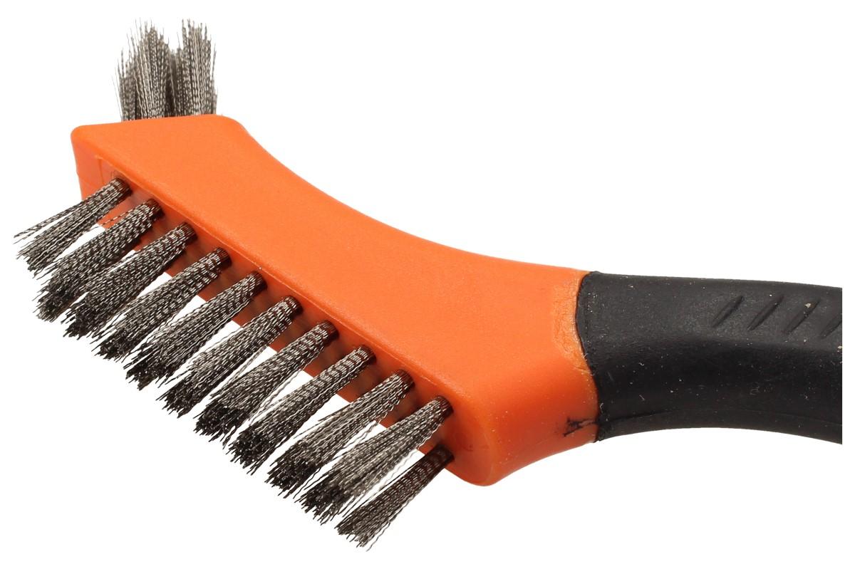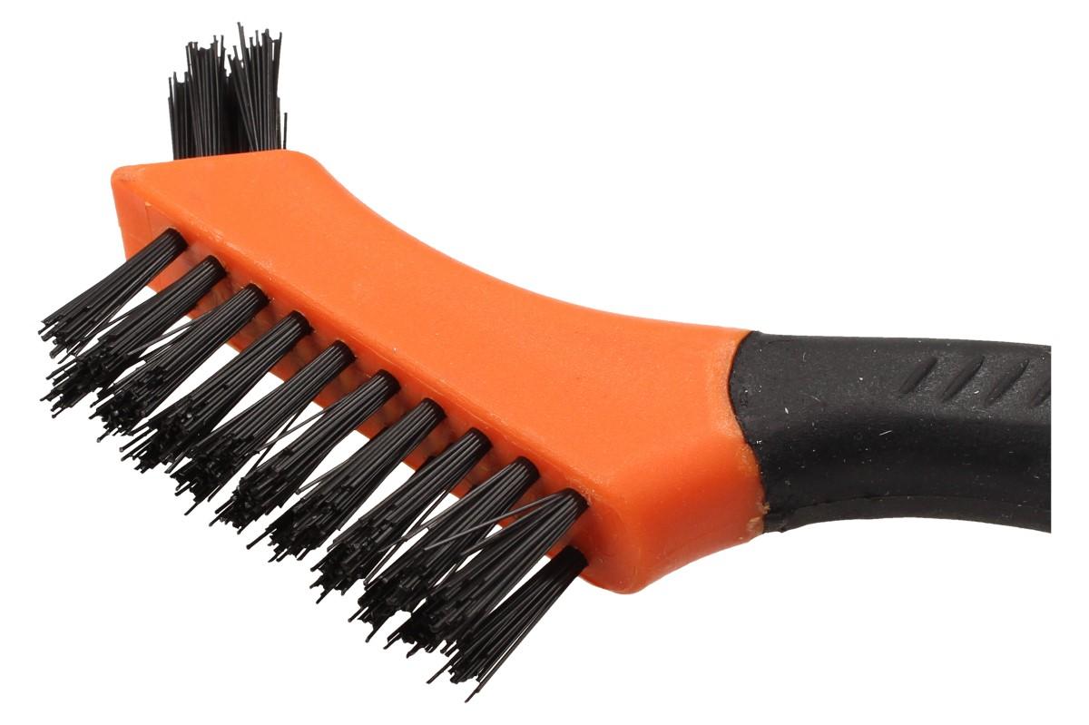 Sada tří mini drátěných kartáčů vhodných pro různé aplikace. Sada obsahuje mosazný kartáč, kartáč z nerezové oceli a nylonový drátěný kartáč a všechny jsou vhodné pro různé čištění. Malá velikost těchto kartáčů znamená, že jsou ideální pro čištění malých součástí automobilu, jako jsou zapalovací svíčky nebo odstranění malých skvrn z rzi a nadměrného lakování. Skvělá všestranná sada. Ergonomická rukojeť z tvrdého plastu je potažena měkkou gumou, odolnou proti rozpouštědlům. Délka drátů 16 mm, 3 × 8 řad, 23 svazků a 5 svazků na přední straně. Vhodné také k čištění dřevěných povrchů, bot, gumy a všeho na co si jen vzpomenete.