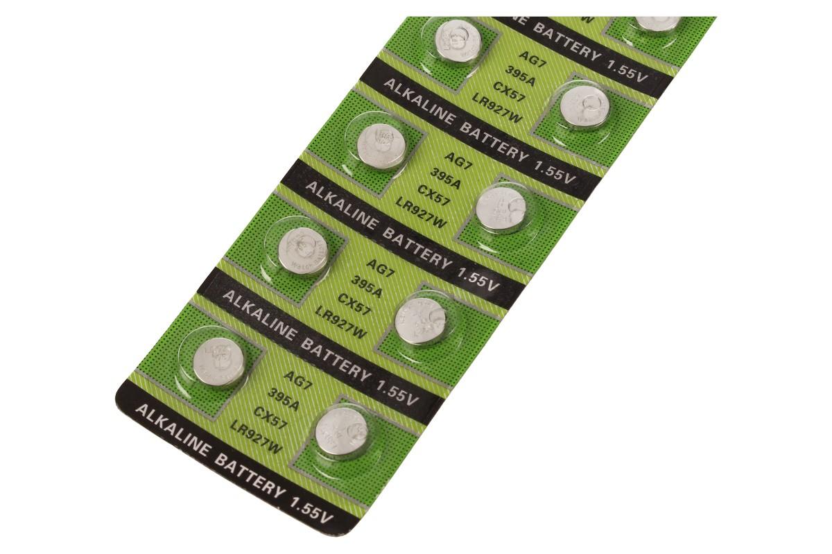 Knoflíková baterie AG7 395A CX57 LR927W 1,55V patří mezi nejpoužívanější mincové baterie. Díky dlouhé skaldovatelnosti vám baterie vydrží až několik let. Baterie se dodávají po jednom kusu a nebo v počtu, který si určíte. Je hojně využívána v elektronických zařízeních všeho druhu. Využije te ji do dálkových ovladačů a dalších malých zařízení, jako jsou kalkulačky, kamery, alarmy, čelovky, hodinky, blikátka a svítilny na kolo apod.