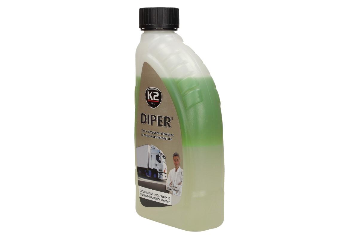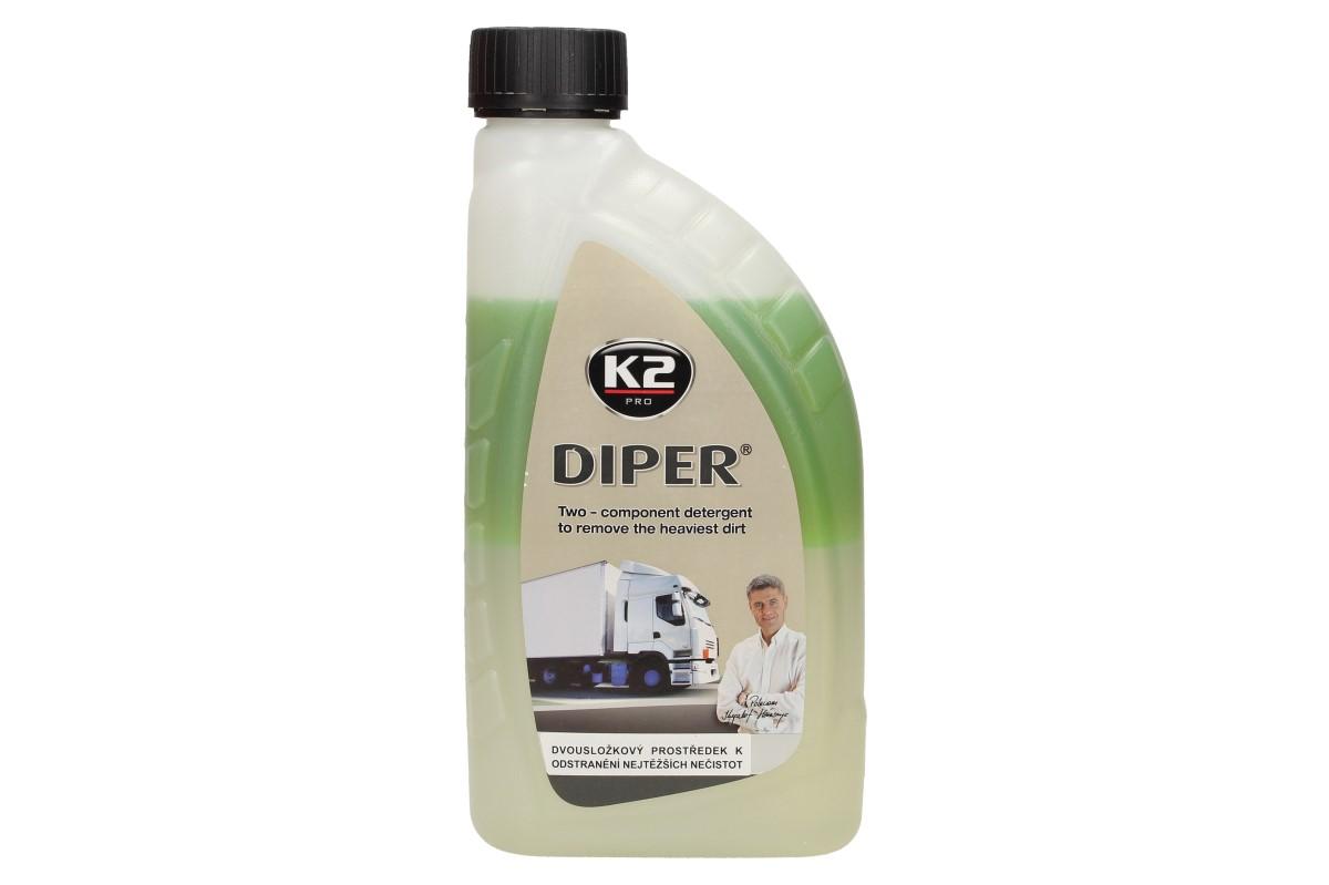 K2 DIPER 1 kg je dokonalý a profesionální čistící prostředek. Rychle a efektivně odstraní nejvíce zatvrzelou špínu u plátěných povrchů, dodávek, kamionů, cisteren, vlaků, podvozků, kol, hliníkových částí, nářadí a dílenských podlah. V koncentrované formě obsahuje dvě vrstvy. Může být použit na jakémkoliv druhu laku. Před použitím důkladně protřepejte, aby se složky spojily.