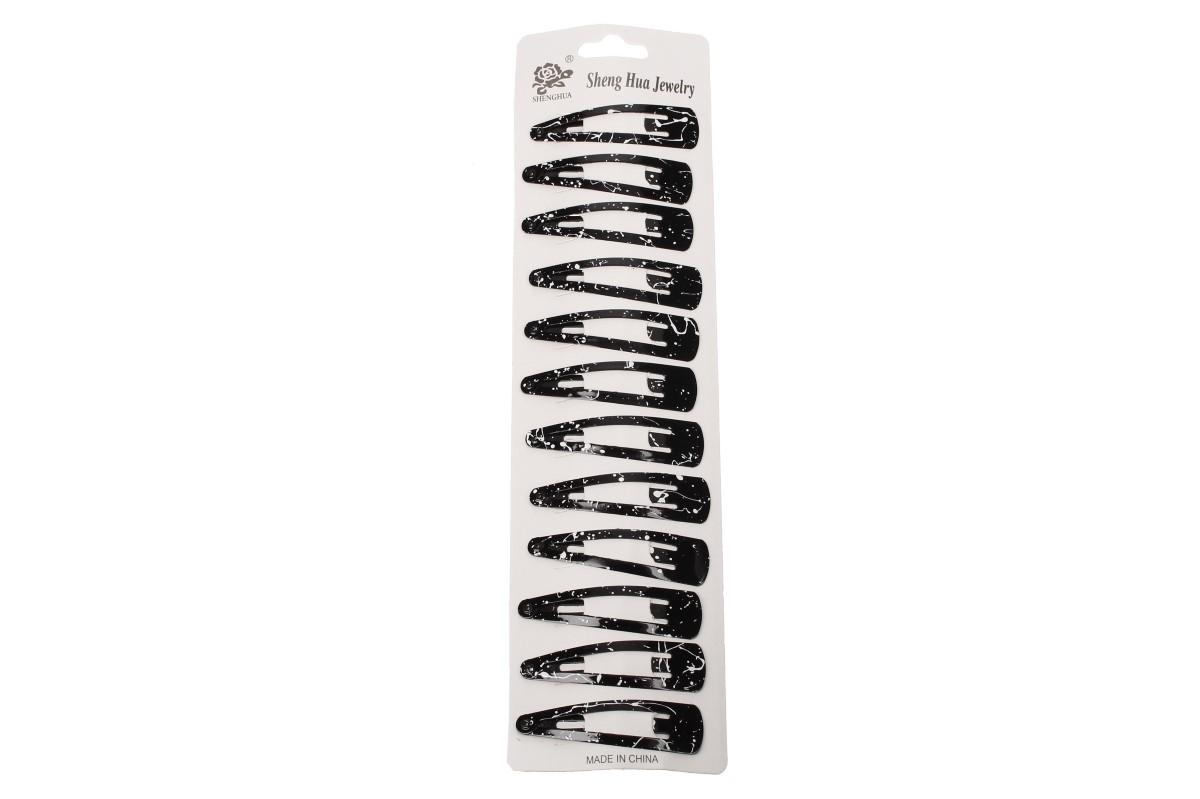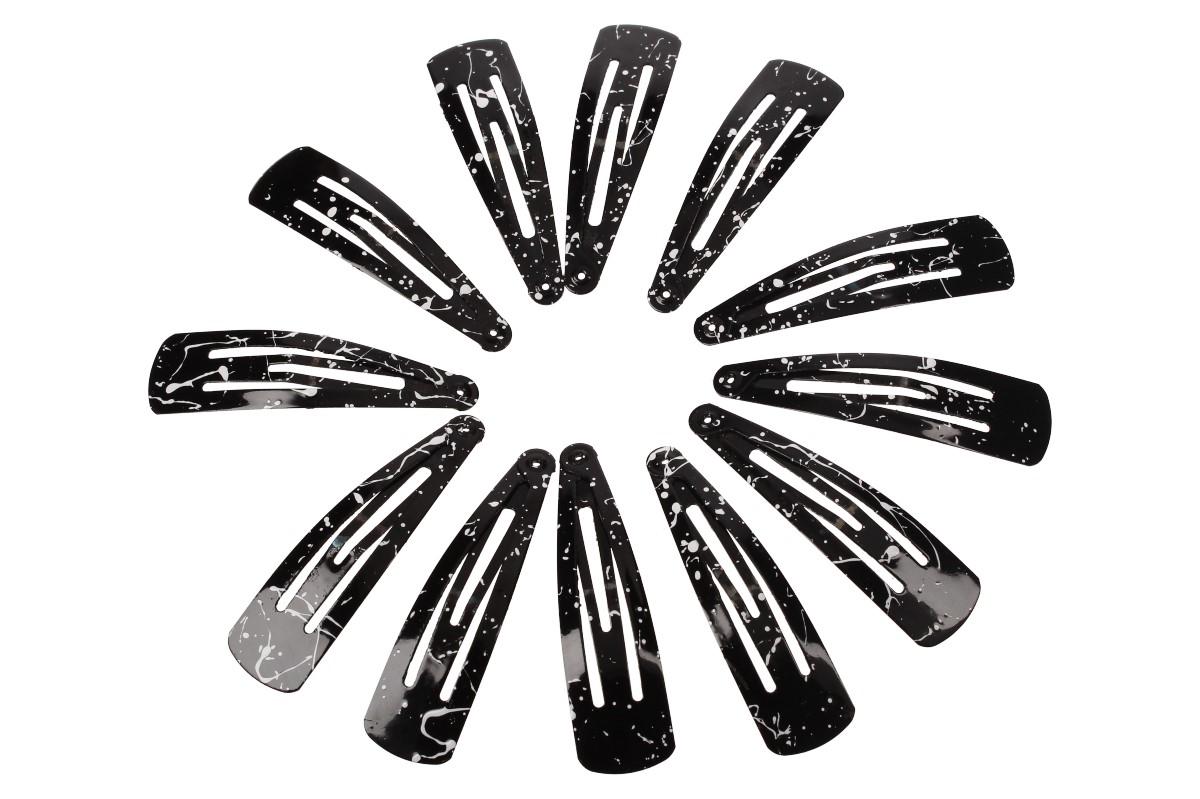 Sponky do vlasů 12 kusů černé vzorované jsou nepostradatelným doplňkem každé dívky i ženy. Sponky do vlasů zabrání padání ofiny do očí, nebo přidrží účes, který potřebujete. Sponky také můžete použít jako základ a připevnit na ně různé kytičky a jiné ozdoby. Sponky jsou vyrobeny z kovu. Dodáváno po 12ti kusech v černé vzorované barvě. Sponky jsou navrženy tak, aby bezpečně zapadly do účesu a vydržely celý den.