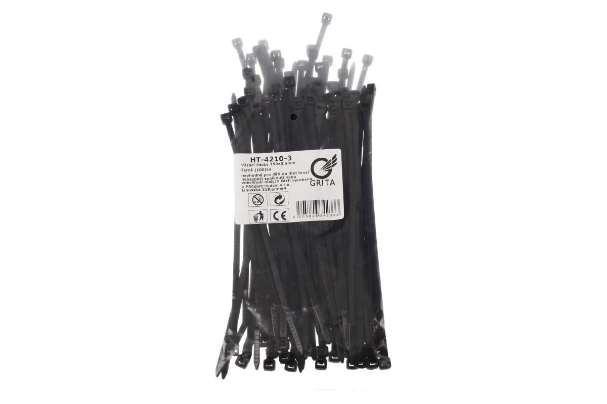 Stahovací pásky černé 3,6 x 150 mm, 100 kusů jsou kvalitní a efektivní nylonové pásky pro stahování kabelů nebo různého materiálu. Velice praktická věc do každé dílny, garáže i domácnosti. Ideální teplota při montáži je min. -10° C, provozní teplota -40° C až 85° C. Dodáváno v černé barvě. Prohlédněte si celou nabídku stahovacích pásek.