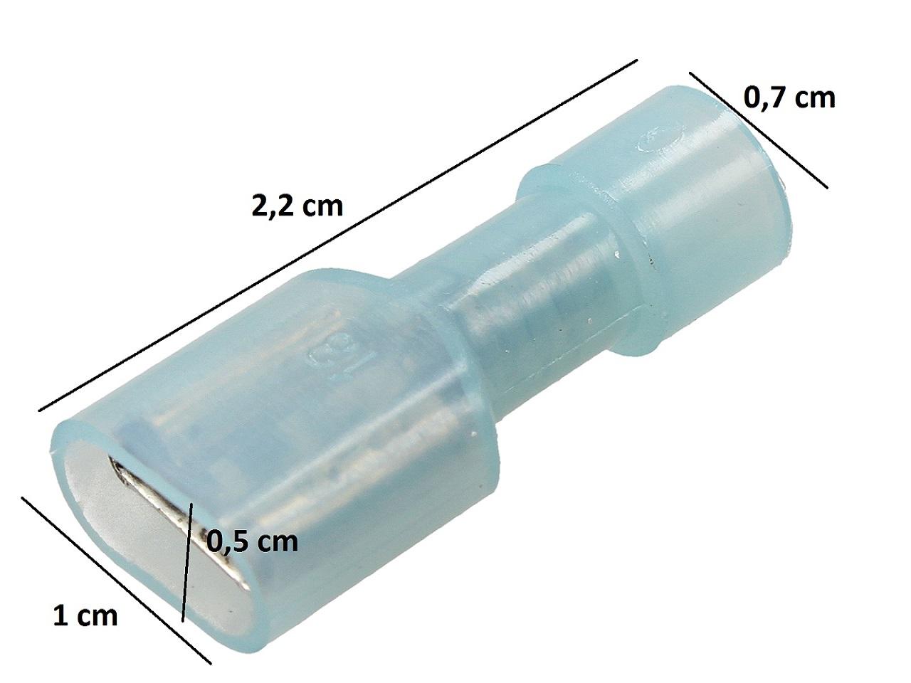 Izolované ploché konektory jsou dodávány v sadě po 12 ti kusech. Hodí se například pro elektrikáře, mechaniky nebo do dílny. Rozměr konektoru naleznete níže ve fotografiích.
