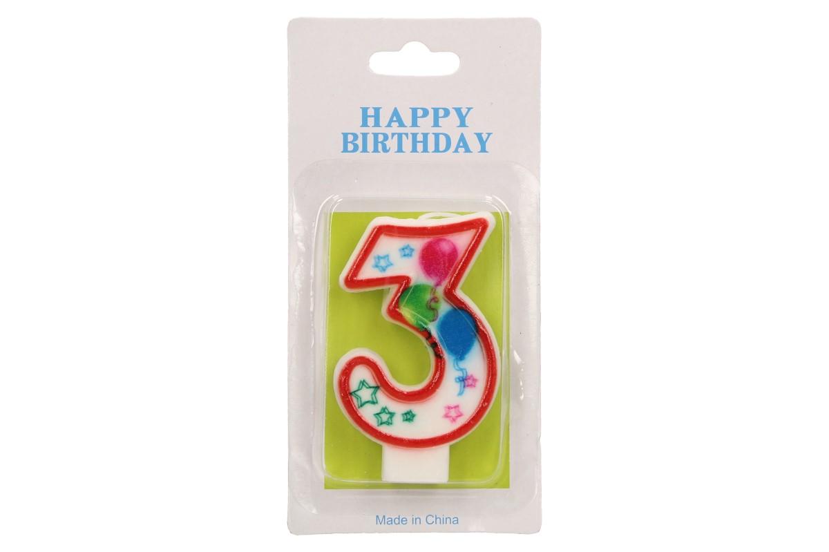 Svíčka na dort- číslo 3 je narozeninová, či párty svíčka se stojánkem z vosku, pro pevné a pohodlné umístění. Výška svíčky 7cm. Díky naší nábídce číslových svíček si libovolně vytvoříte dekoraci s věkem oslavence