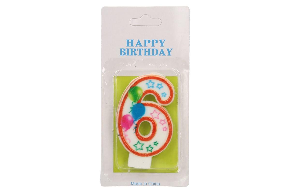 Svíčka na dort- číslo 6 je narozeninová, či párty svíčka se stojánkem z vosku, pro pevné a pohodlné umístění. Výška svíčky 7cm. Díky naší nábídce číslových svíček si libovolně vytvoříte dekoraci s věkem oslavence