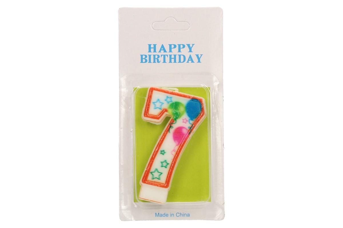 Svíčka na dort- číslo 7 je narozeninová, či párty svíčka se stojánkem z vosku, pro pevné a pohodlné umístění. Výška svíčky 7cm. Díky naší nábídce číslových svíček si libovolně vytvoříte dekoraci s věkem oslavence