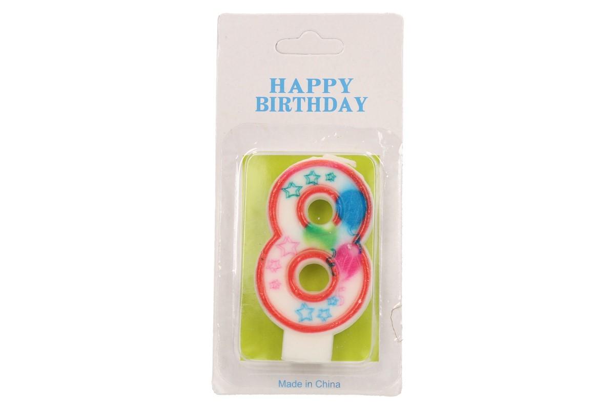 Svíčka na dort- číslo 8 je narozeninová, či párty svíčka se stojánkem z vosku, pro pevné a pohodlné umístění. Výška svíčky 7cm. Díky naší nábídce číslových svíček si libovolně vytvoříte dekoraci s věkem oslavence