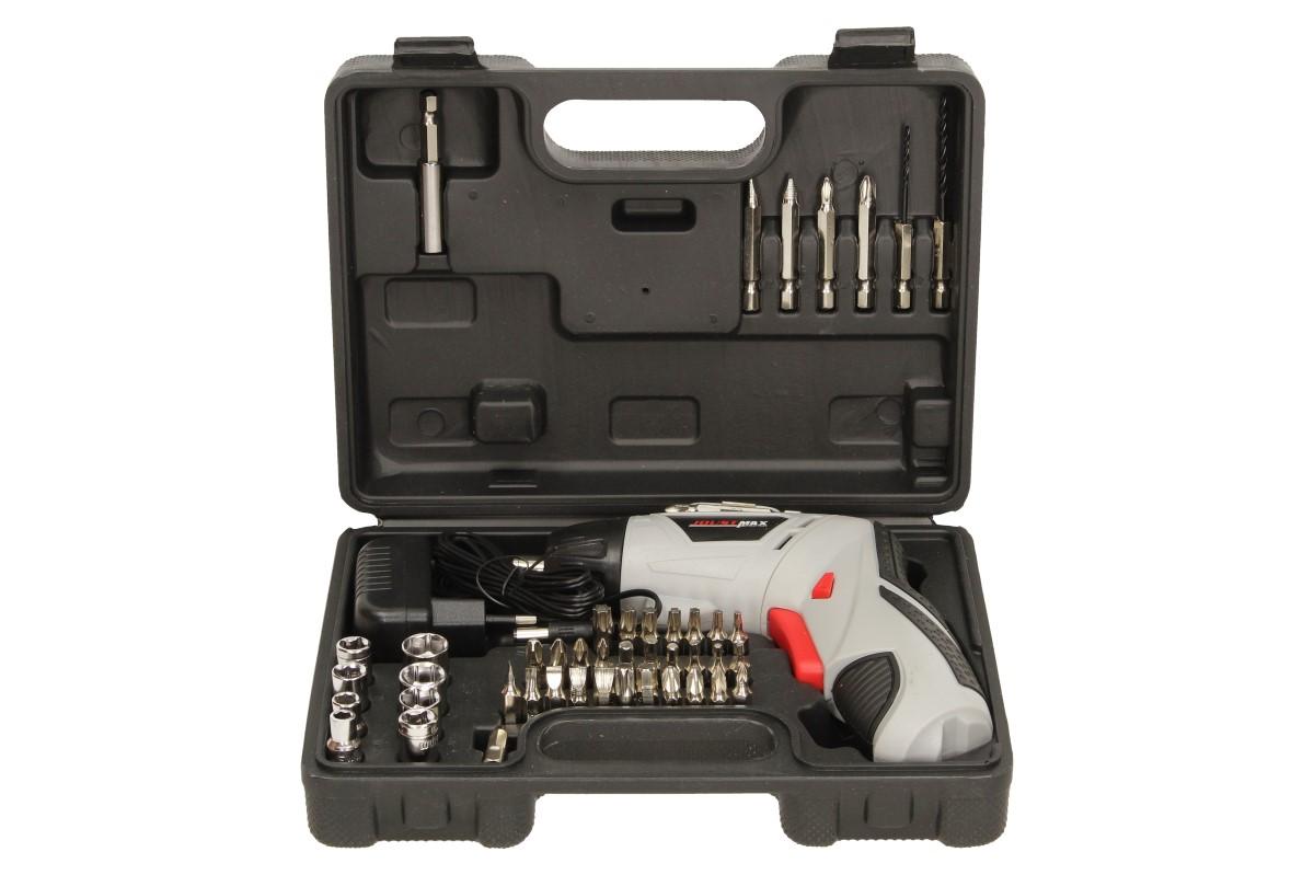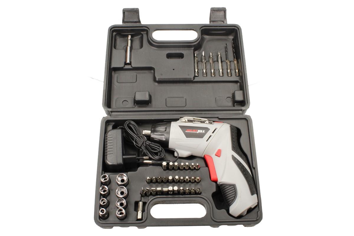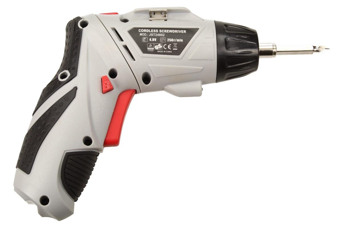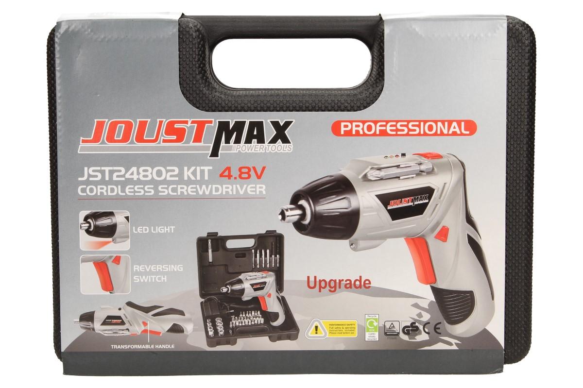 Akumulátorový šroubovák JST24802 4,8V je dodáván v černém plastovém kufříku spolu s nabíječkou, prodlužovacím nástavcem a 49 ks bitů různých rozměrů a tvarů. Tento šroubovák je vybaven základními funkcemi, ale ve vaší domácnosti pro něj jistě najdete mnoho využití. Můžete přepínat mezi (R/L) pravotočivým chodem a levotočivým na bocích těla šroubováku. Pokud pracujete v místě, kde je špatná viditelnost jistě oceníte LED osvětlení. Celý šroubovák je velmi kvalitně zpracovaný včetně pogumované rukojeti, která zajistí vysokou míru komfortu při práci. Rukojeť je navíc otočná, můžete vrtat pod úhlem 90 ° nebo 180°, díky tomu se můžete dostat i do špatně přístupných míst. Vhodné jako dárek!