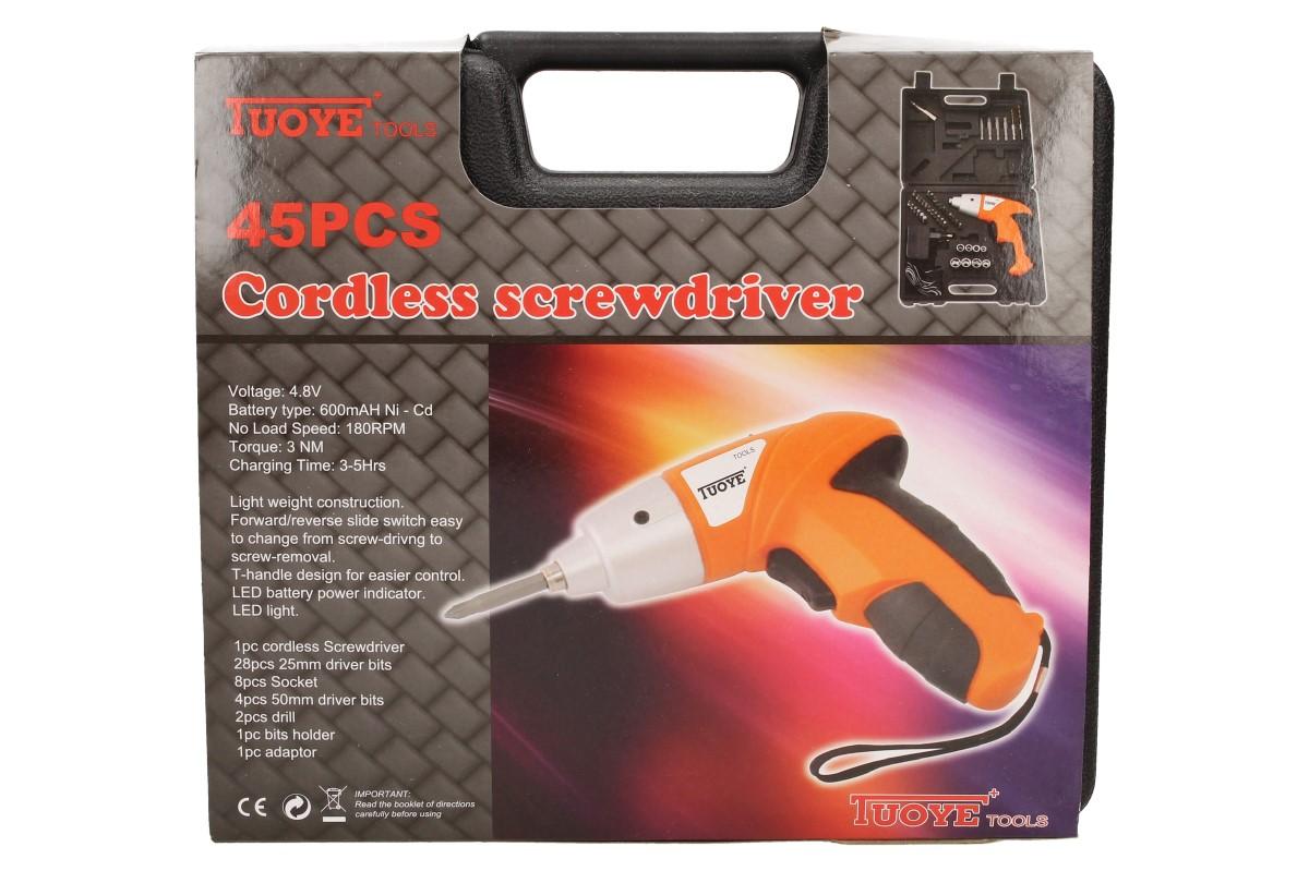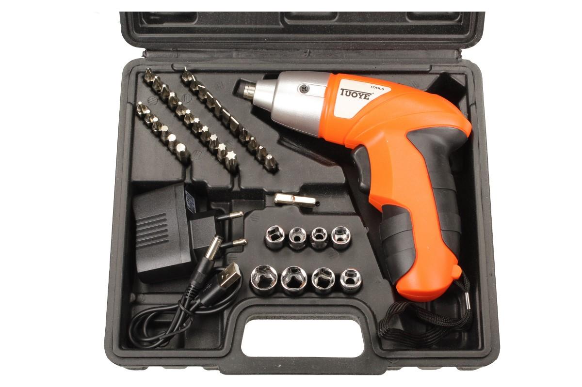 S tímto akumulátorovým šroubovákem Tuoye 4,8V zvládne pracovat i ta nejdrobnější žena, díky nízké hmotnosti. Ideální pro dílnu, montáž nábytku a další práce. Lze ho také využít při malých rekonstrukcích domů. Je dodáván v černém plastovém kufříku spolu s nabíječkou, prodlužovacím nástavcem a 45 ks bitů různých rozměrů a tvarů. Tento šroubovák je vybaven základními funkcemi, ale ve vaší domácnosti pro něj jistě najdete mnoho využití. Můžete přepínat mezi pravotočivým chodem a levotočivým na spínači šroubováku. Pokud pracujete v místě, kde je špatná viditelnost jistě oceníte LED osvětlení. Stav nabití můžete vidět díky třem barevným LED světýlkům (stisknete malé černé tlačítko pod nimi). Celý šroubovák je velmi kvalitně zpracovaný včetně pogumované rukojeti, která zajistí vysokou míru komfortu při práci a praktického poutka na ruku. Pokud je Vaše žena, přítelkyně, teta, ségra,.. vášnivý kutil, tento dárek jistě ocení.