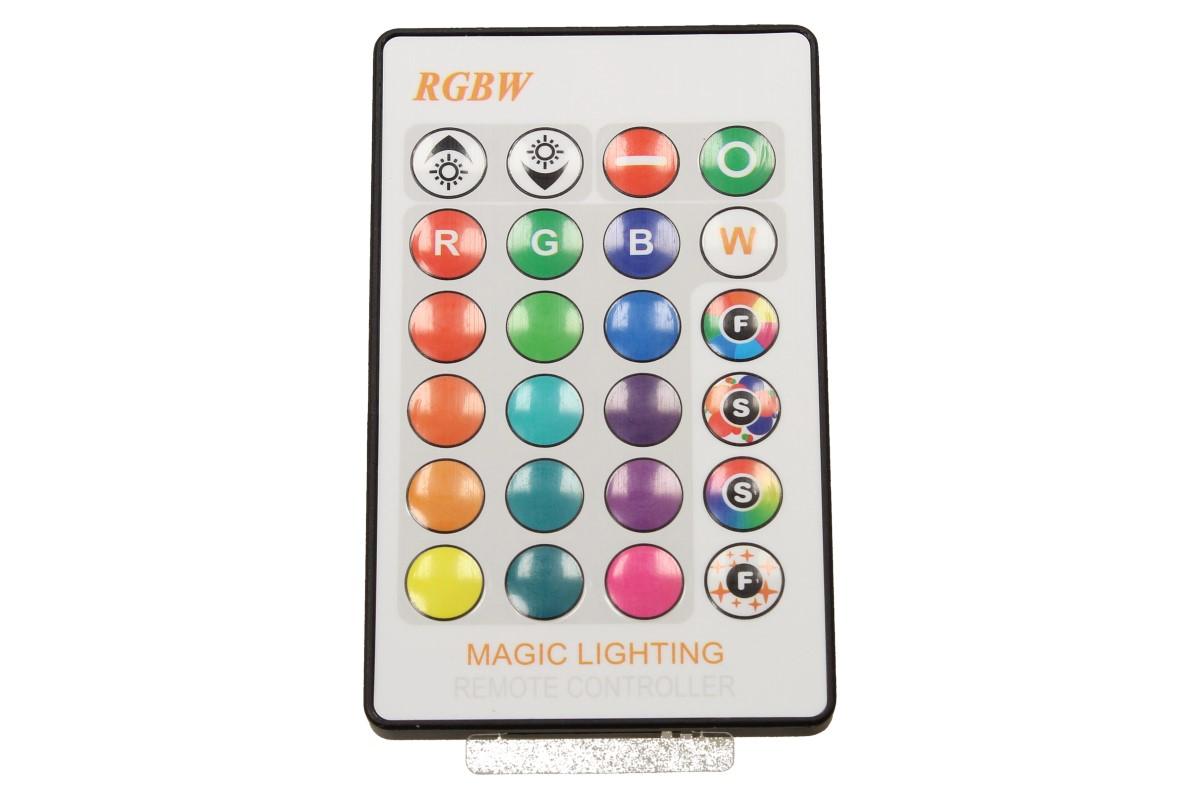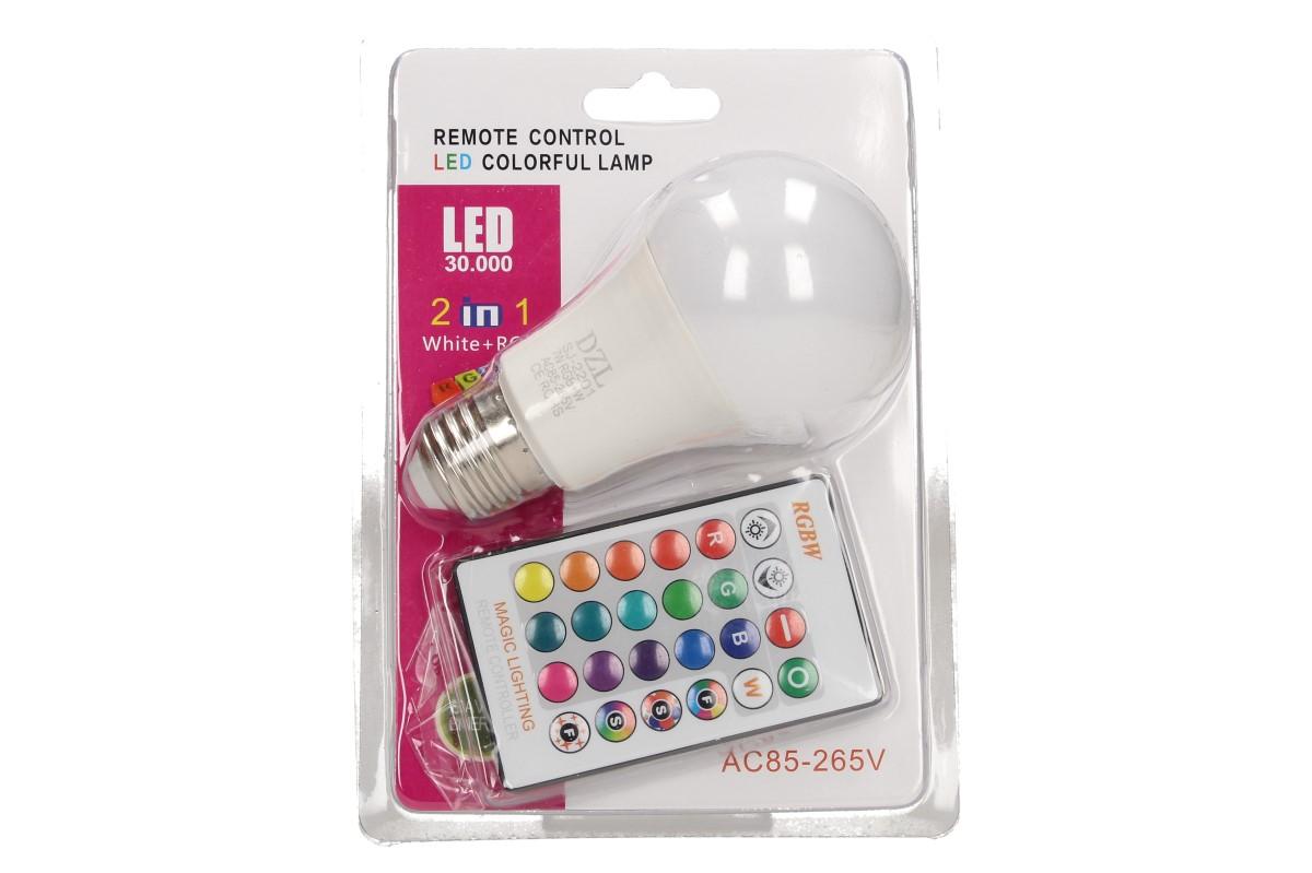 LED žárovka se zabudovaným RGB čipem, u níž je za pomoci dálkového ovládače možné měnit barvy svícení je u mnoho lidí hitem!. Je možné nastavit 16 různých barev a 4 světelné efekty, navíc je možné nastavovat i intenzitu svícení. Dosah ovladače je asi 4 m. Tato žárovka je vybavena plastovou konstrukcí, která zajišťuje delší životnost. LED RGB žárovka W na dálkové ovládání má klasický tvar a nejpoužívanější závit E27.