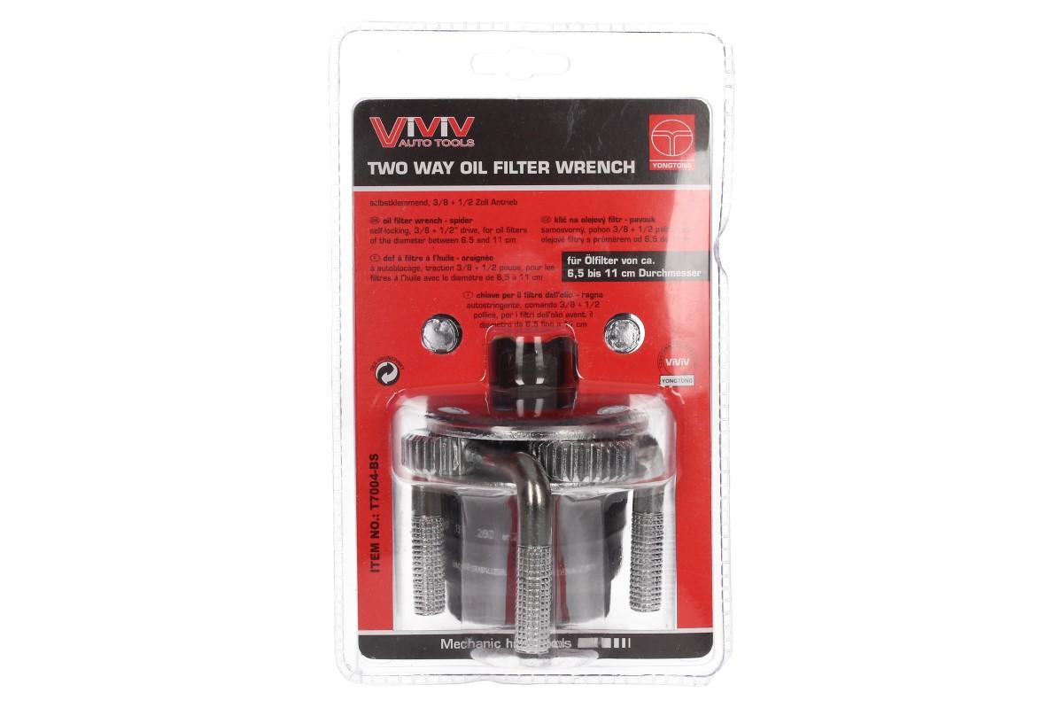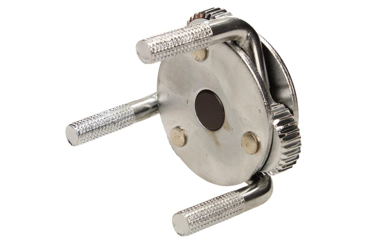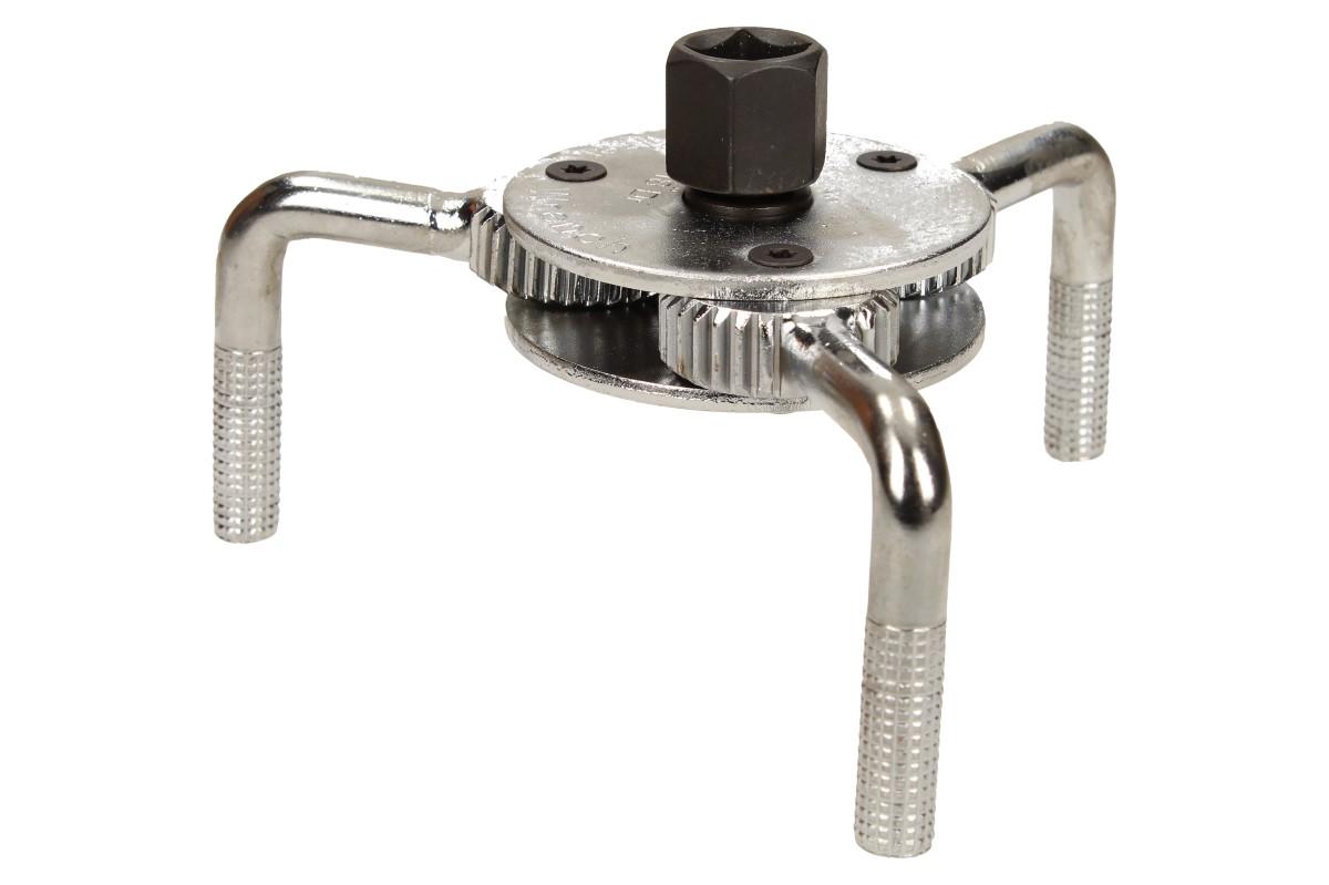Nastavitelný klíč na olejový filtr vám pomůže při jeho montáži nebo demontáži. Opatřeno třemi čelistmi, které jsou navrženy tak, aby filtr uchopily pevně. Určeno pro filtry o průměru 65 - 110 mm. Díky zdrsnění na upínacích ramenech má pevný záběr při uvolňování nebo utahování filtru. Klíč se nasadí na olejový filtr a pomocí ráčny (1/2") nebo stranového či nástrčného klíče se olejový filtr utáhne či povolí.