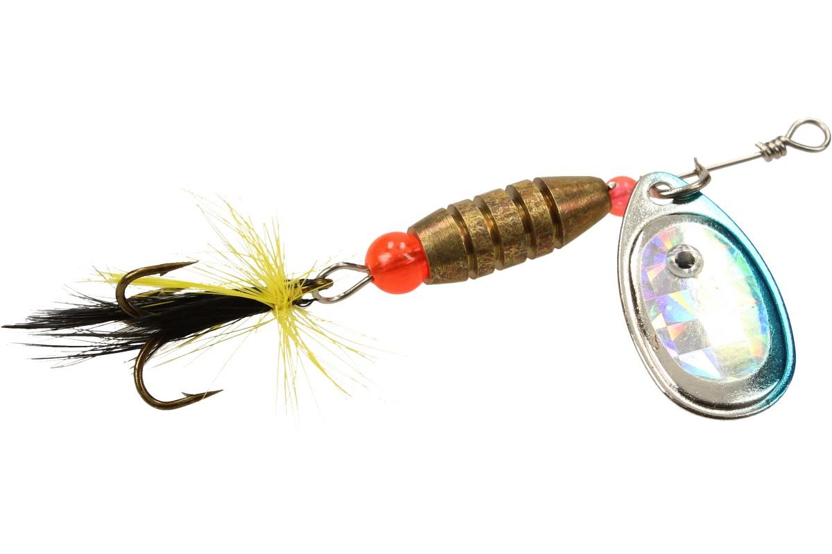 Každý rybář jistě doma už nějakou rotační třpitku s peřím má, ale proč si nepořídit ještě nějakou? Návnada má na sobě přidělaný pevný trojháček z nerezové ocili, který je schovaný v umělých vlasech. Třpitka zajišťuje perfektní rotaci v proudu řeky nebo potoka stejně jako ve stojaté vodě, a to i při pomalém vedení a okamžitě po dopadu na hladinu.