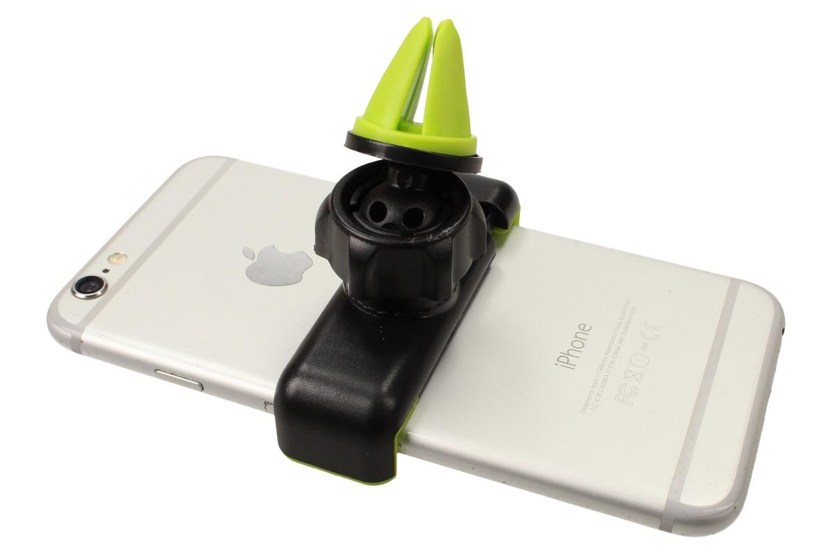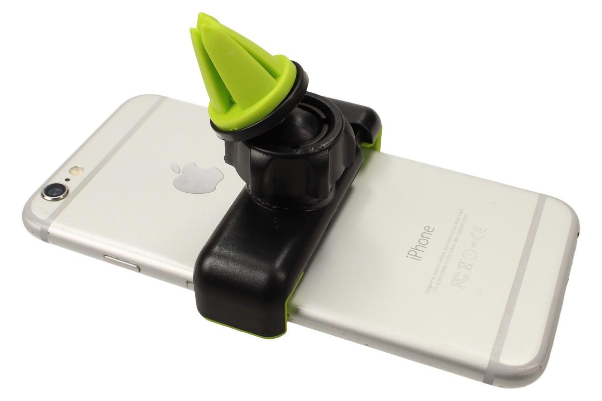 Pokud Vám držáky na telefon, které přilepíte na čelní sklo nevyhovují, právě jste našli řešení! Držák telefonu do mřížky ventilace drží váš telefon pevně a vy tak máte stálou kontrolu o tom, co se děje okolo Vás. Je vhodný pro všechny typy telefonů a navigací s rozpětím 60 - 90 mm. S telefonem v držáku můžete libovolně otáčet v rozsahu 360°, tudíž může být svisle, vodorovně i šikmo podle potřeby. Dále stačí utáhnout, aby držák zůstal nehybně v požadované poloze. Vnitřní ochranné polstrování kleští zaručí, že se vám telefon z jeho používání nepoškrábe. Nemá žádný vliv na větrání a klimatizaci v autě.