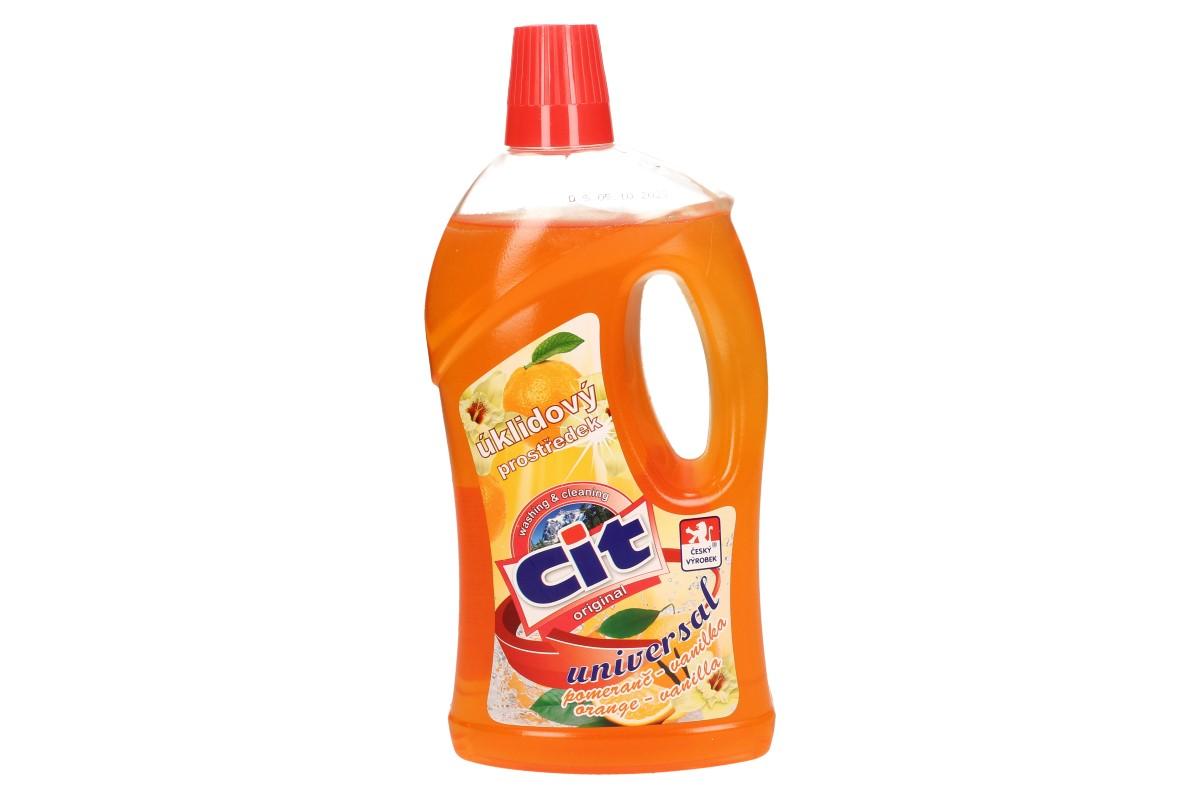 CIT univerzální úklidový prostředek vás snadno a efektivně provede každodenním úklidem vaší domácnosti. Účinně čistí podlahy, kachličky, nábytek, vodovodní kohoutky, vany a silně znečištěné povrchy. Jedná se o neředěný prostředek, který lze nakapat rovnou na houbičku. Pokud se rozhodnete vytírat postačí vám 50 až 100ml na 10l vody. Příjemná vůně pomeranče s nádechem vanilky provoní vaši domácnost na velmi dlouhou dobu.