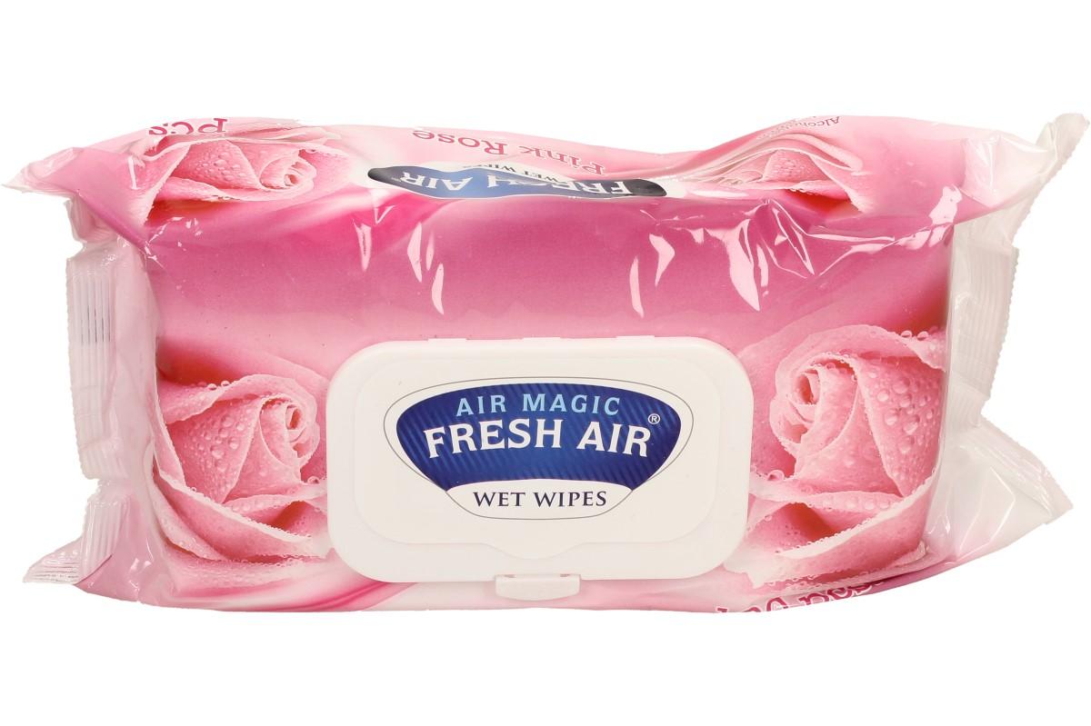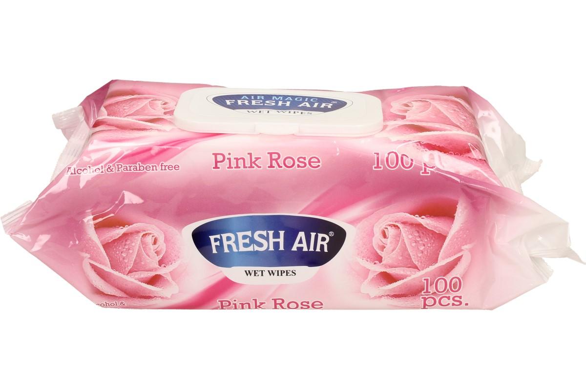Fresh Air vlhčené ubrousky Pink Rose, pružné vlhké ubrousky, které neobsahují alkohol, jsou hygienické, čistí, hydratují a vyživují pokožku. Jsou velmi všestranné, můžete s nimi uklidit domácnost, provést rychlou hygienu, použít při přebalování miminek a mnoho dalšího. Ubrouskú naleznete v balení 100 kusů a každý z nich je extra pevný, sametový a měkký.