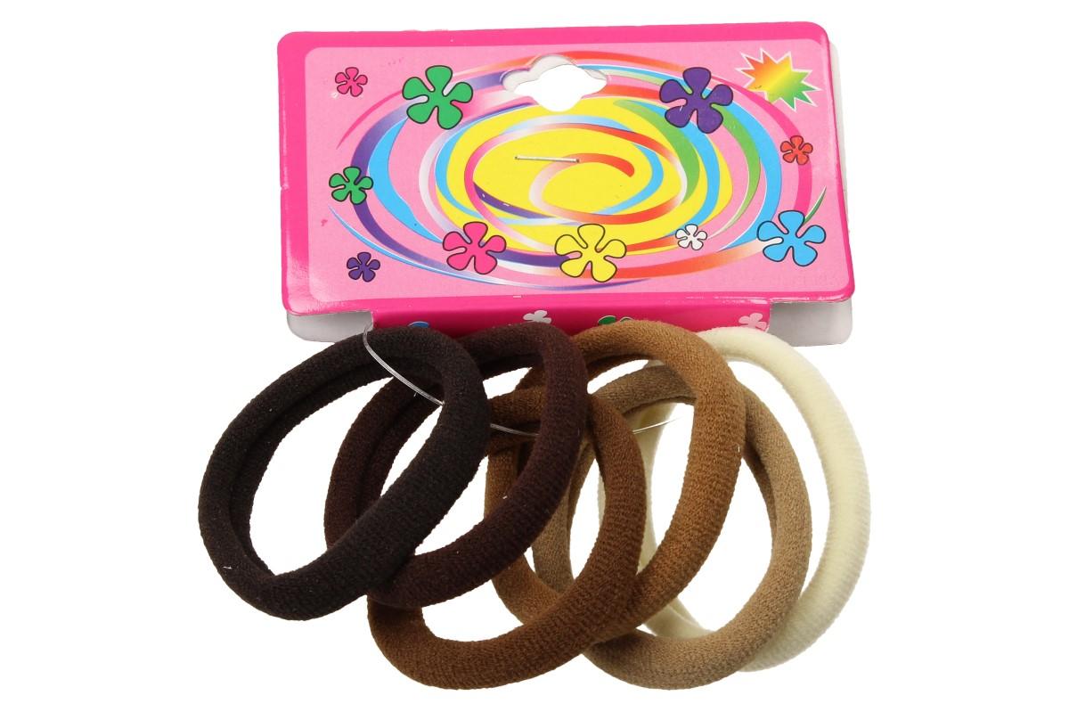 Pevné hnědé gumičky do vlasů Sada 6 kusů jsou vyrobeny z jemného materiálu, který netahá a nepoškozuje vlasy. Ideální využití gumiček je pro jakýkoliv účesy i typy vlasů, takže pohodlně vytvoříte pevný účes, který se jentak nerozpadne. Gumička o průměru 4 cm je velice pružná a přizpůsobivá. V balení je 6 barev, od světlé blond až po tmavě hnědou.