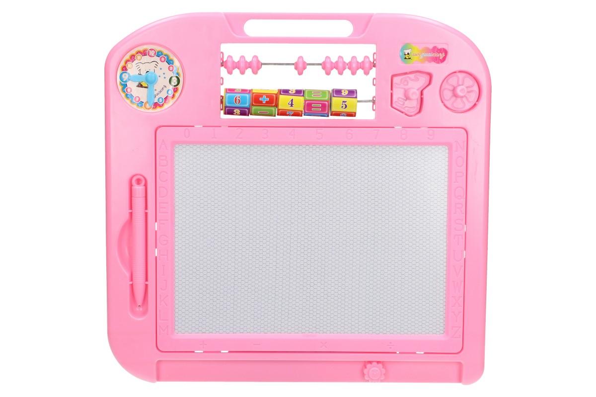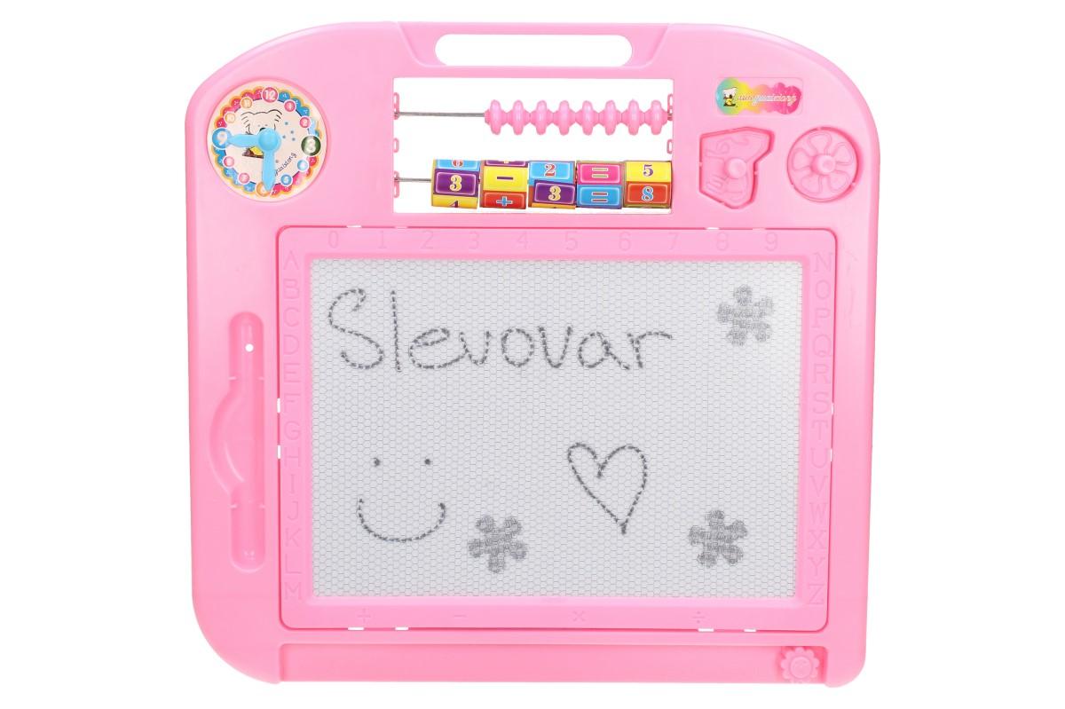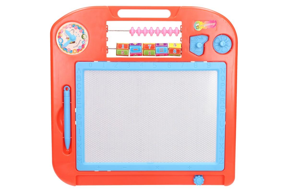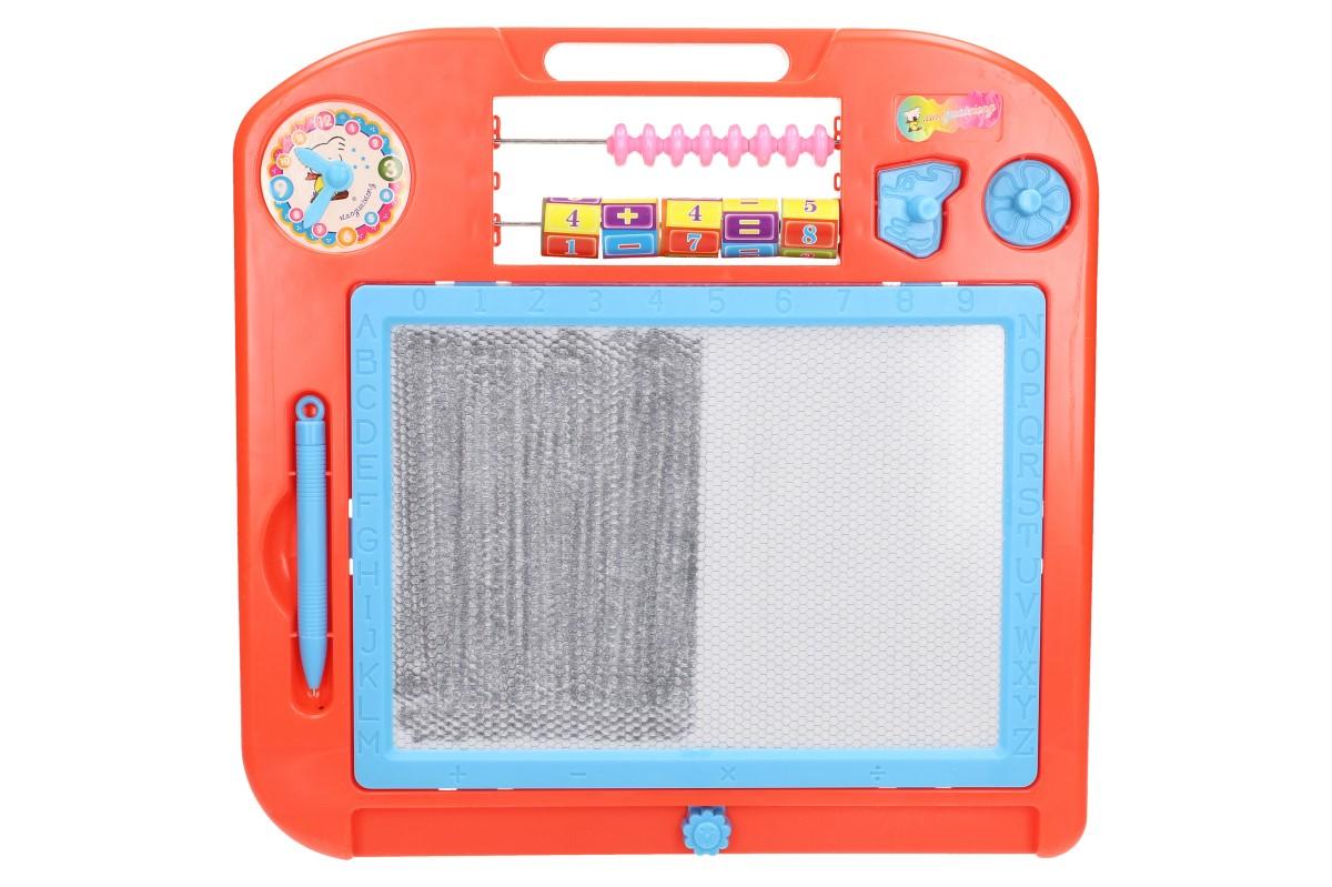 Magnetická kreslící tabulka je určena pro všechny děti, co si rádi malují a mají fantazii. Tato kreativní hračka děti nikdy neomrzí, protože si budou moct vytvářet stále nové obrázky a vy ušetříte za papír či vymalování stěny :) . Tabulka obsahuje tužku s kovovým hrotem, dvě razítka, ručičkové hodiny, malé počítadlo, abecedu a čísla do 9.