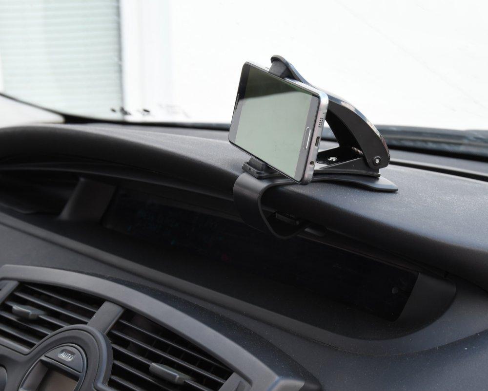 Pokud Vám držáky na telefon, které přilepíte na čelní sklo nebo dáte do mřížky ventilace nevyhovují, právě jste našli řešení! Držák telefonu na hranu palubní desky, drží váš telefon pevně, a vy se tak můžete 100% věnovat řízení. S tímto držákem máte stálou kontrolu o tom, co se děje okolo Vás. Je vhodný pro všechny typy telefonů a navigací s rozpětím 0 - 75 mm. S telefonem v držáku můžete libovolně otáčet v rozsahu 360°. Vnitřní ochranné polstrování kleští zaručí, že se vám telefon z jeho používání nepoškrábe.