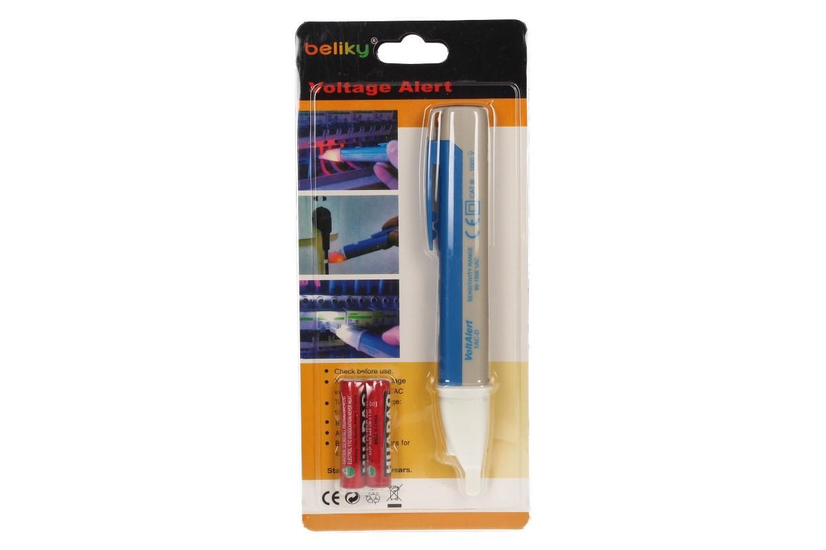 Zkoušečka napětí beliky meří v rozsahu 90-1000V, při kontaktu s napětím se červeně rozsvítí a zapípá špička zkoušečky pro upozornění na napětí. Zkoušečka může být vhodný dárek pro elektrikáře, kutily, hodinové manžely. Detekuje napětí i bez kontaktu s kovovým povrchem. Jednoduché a bezpečné používání.