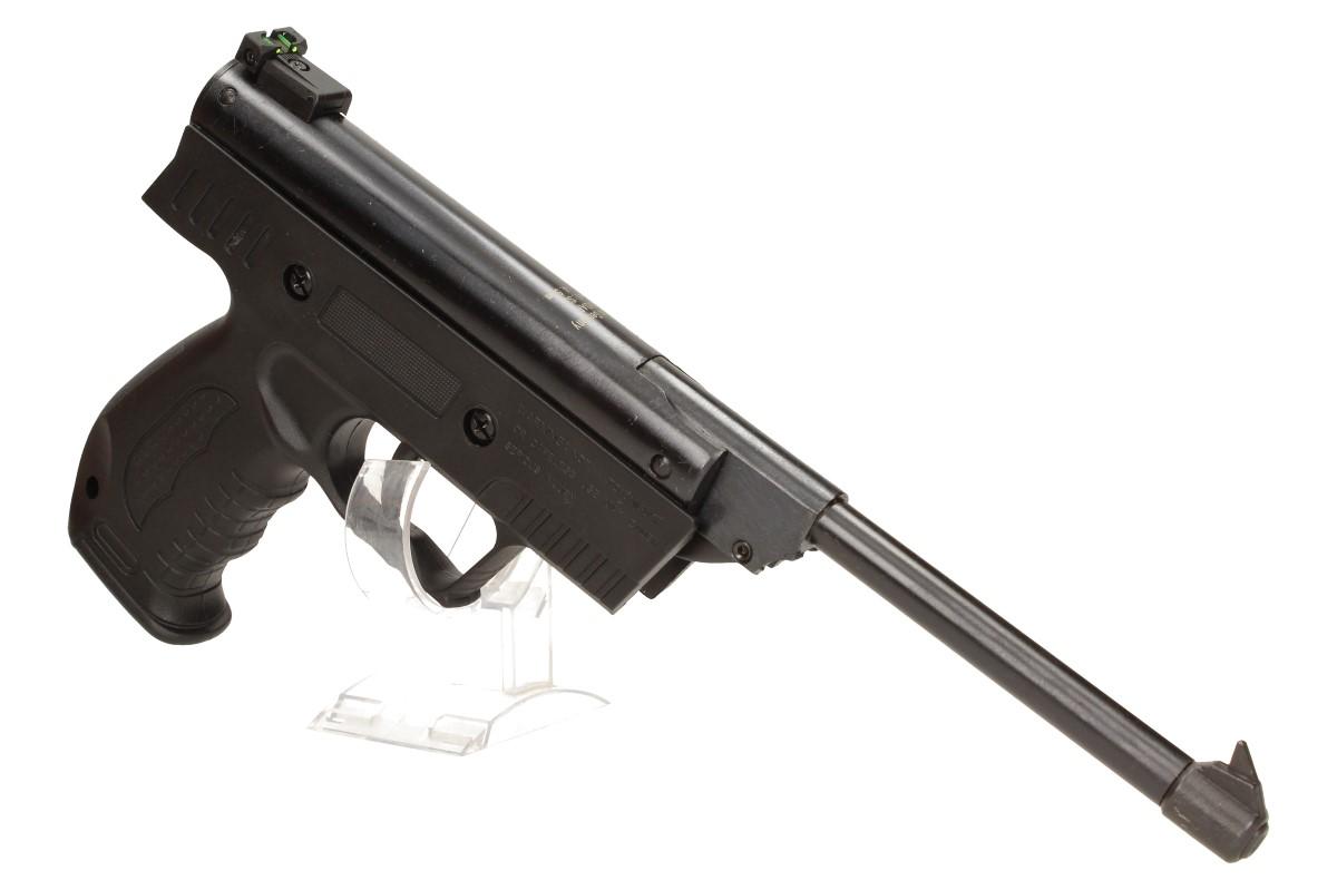 valitní a bytelná vzduchová pistole, která je určena na 4,5mm diabolky. Tento konktrétní model byl navržen a designován v Německu. Pažba této skvělé pistole je vyrobena z pevného a hezkého dřeva, tělo z odolné oceli. Spoušť má dvojí stisk( funguje jako pojistka proti nechtěnému výstřelu). Systém této pistole je velmi jednoduchý a intuitivní, pokud znáte staré vzduchovky Slavia, tak tato funguje na stejném principu. Hlavěn se zlomí směrem dolů, až dokud se nedostane do bodu kdy se zacvakne držák pružiny(hlaveň přestane mít odpor) a poté se může do hlavně vložit jedna 5,5mm diabolka, hlaveň zaklapne a pistole je připravena ke střelbě. Tato pistole je ideální na střelbu do terčů, barelů apod. Má klasická pevná mířidla navíc opatřené reflexním materiálem, který vám zajistí zaostření na cíl. Pistoli dodáváme v pevné kartonové krabici a polystyrenovém boxu.