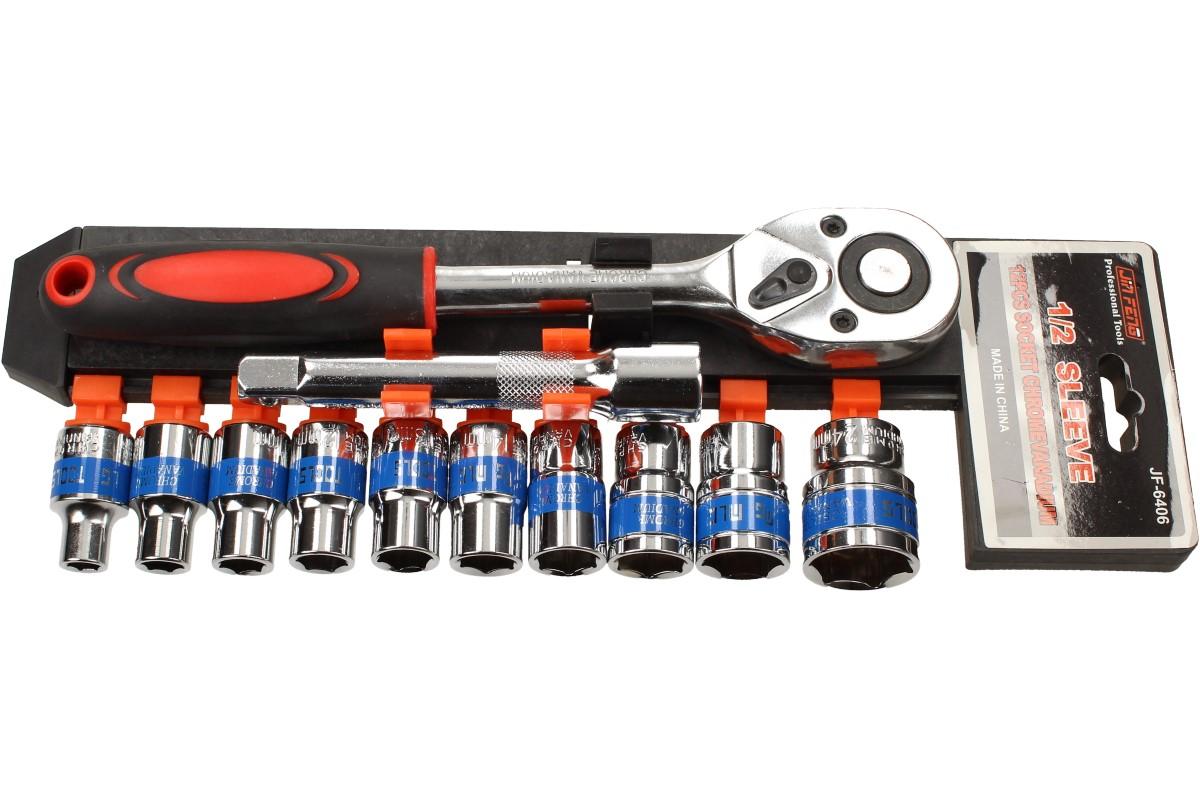 Sada gola klíčů s ráčnou 1/2" je vhodná pro domácí opravy i pro profesionální účely. V této sadě naleznete ráčnu, která má 72 zubů, přepínací páčku R/L a uvolňovací tlačítko. Má ergonimicky tvarovanou rukojeť se zdravotně nezávadnou gumou a očkem pro zavěšení. Všechny části této sady jsou vyrobeny z vysoce kvalitní chrom-vanadiové oceli. Vše je přehledně upevňěno na plastové desce, kterou si můžete pověsit.