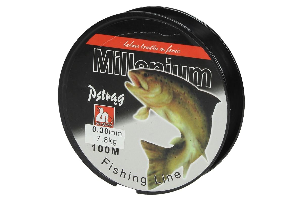 Vlasec na ryby Millenium Pstrug 100 m s tloušťkou 0.30 mm je super pevný, vyvinutý pomocí technologie High-Tech, zpracovaný pomocí tří vrstev silné, měkké a pružné linie. Vlasec je pevný, nepruží ve vodě a je odolný proti prasknutí. Vlasec je vyroben ze 100% nylonu a udrží až 7,8 kg.