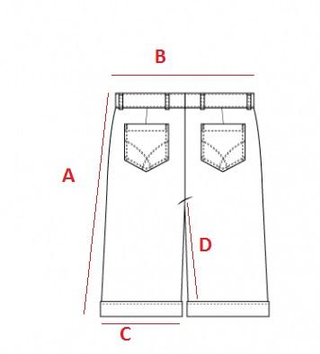 - XL: A- 60 cm , B- 98 cm , C- 66 cm , D-32 cm