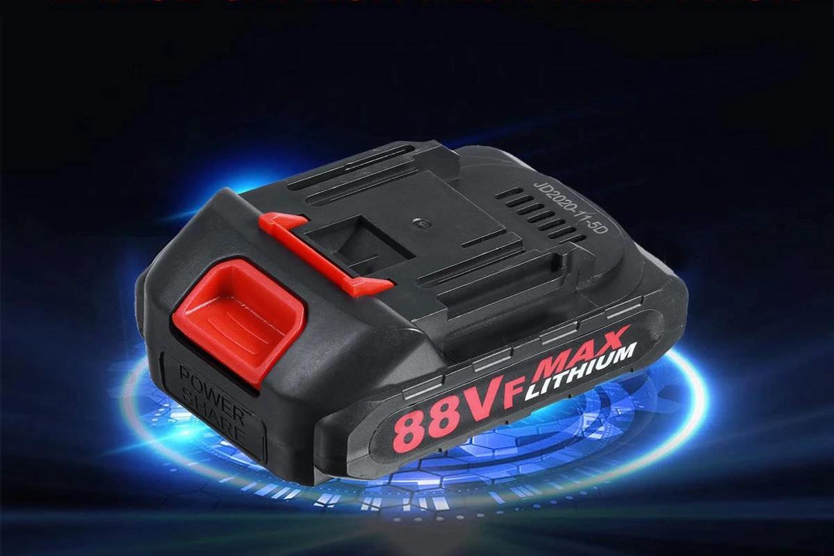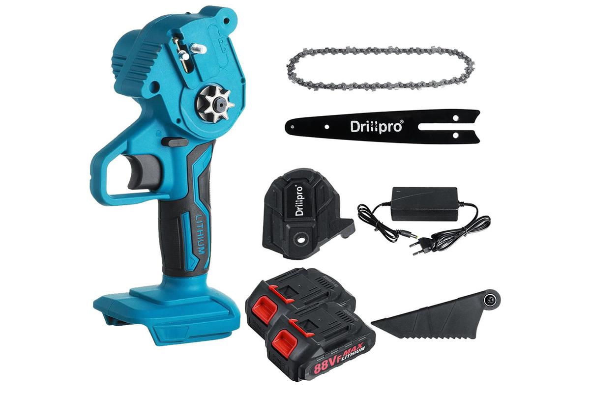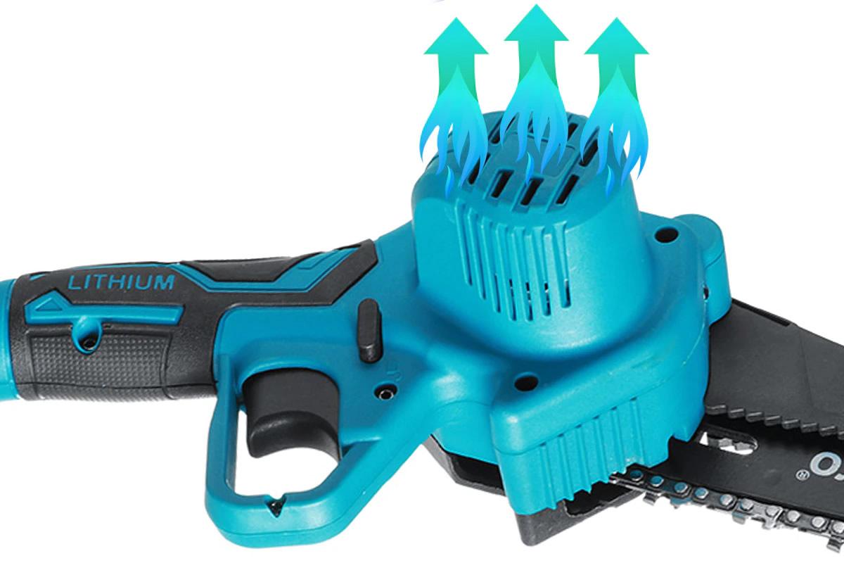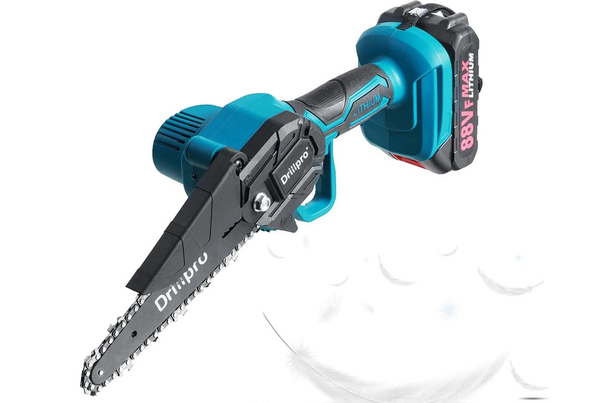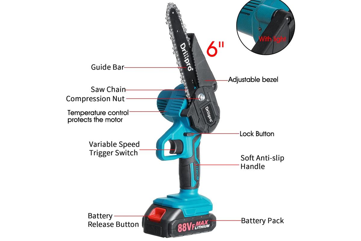 Elektrická ruční pila je vhodná pro zahradnictví a proto by neměla chybět v žádné kůlně. Snadno s ní prořezáte keře, tůje, odříznete větev a mnoho dalšího. Je zde přidané také tlačítko bezpečnostního zámku, které zabrání nechtěnému spuštění. Tato pila se vyznačuje vysokou tvrdostí řetězu a nízkou hmotností, díky které ji můžete používat pouze jednou rukou. Měděný motor zajistí silný výkon a nižší spotřebu energie, to následně zvyšuje efektivitu Vaší práce. Ergonomicky tvarovaná rukojeť pota6ena gumou poskytne pohodlné a pevné uchopení. Můžete si také nastavit i rychlost řezání, klasickým stlačováním spíneče. Spolu s pilou obdržíte v balení 2 kusy 88Vf Lithiových baterií.