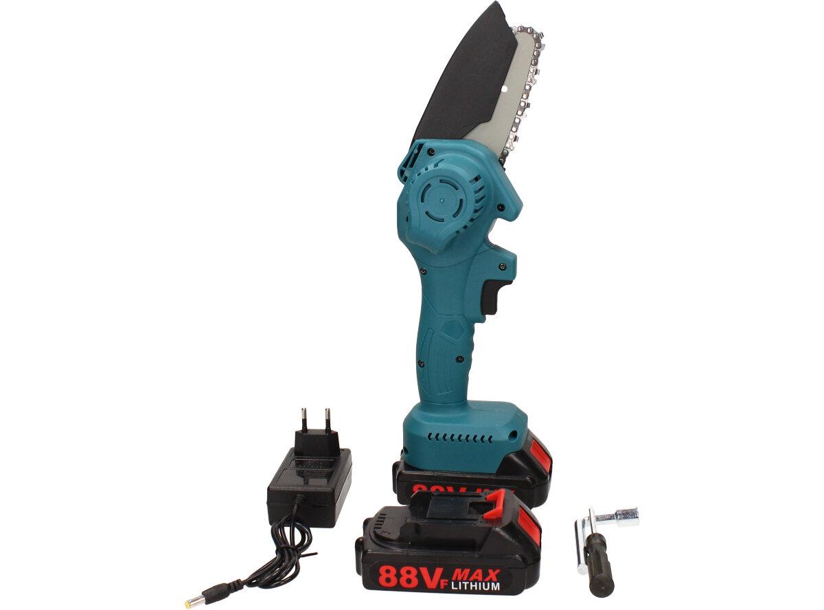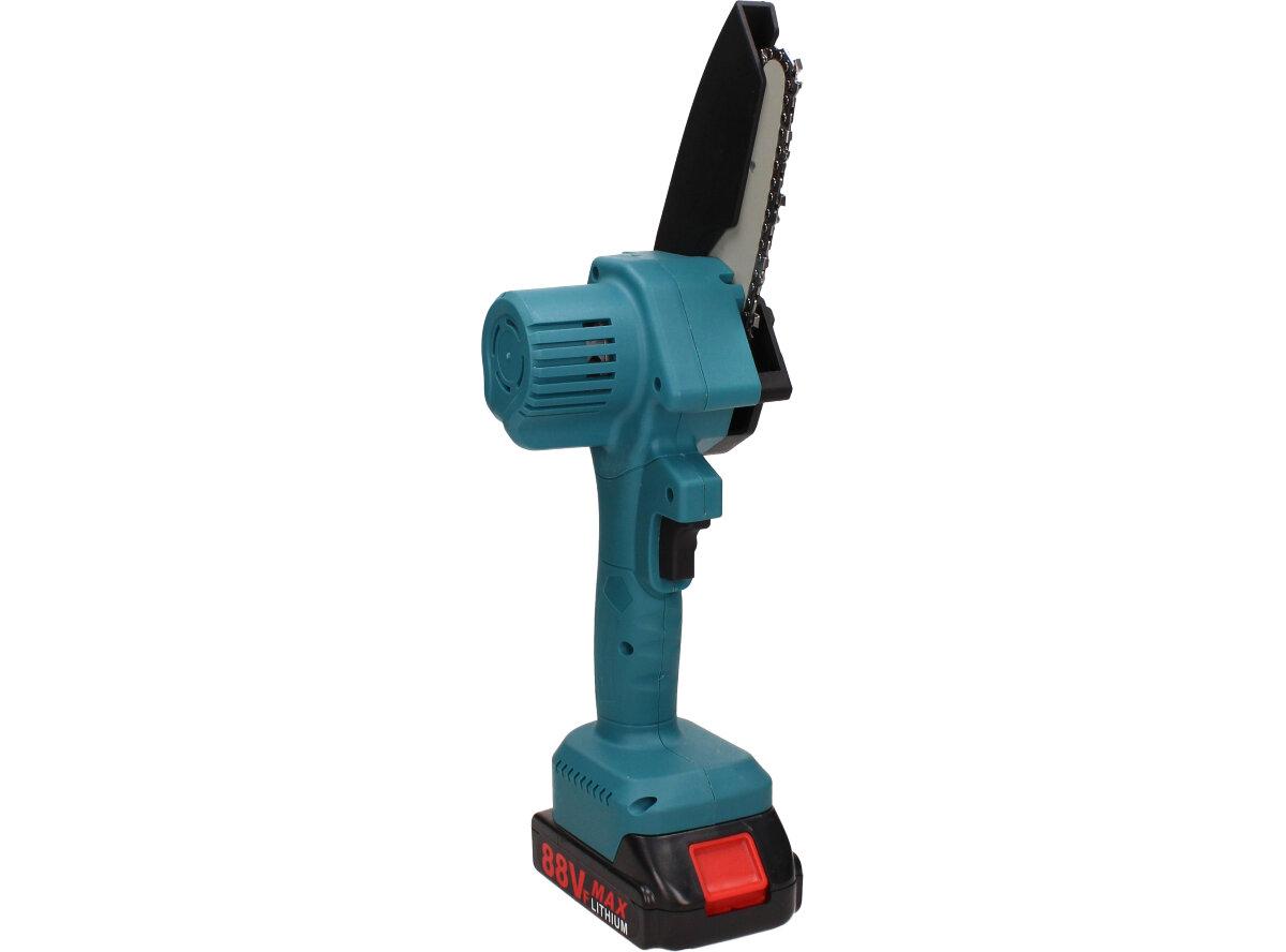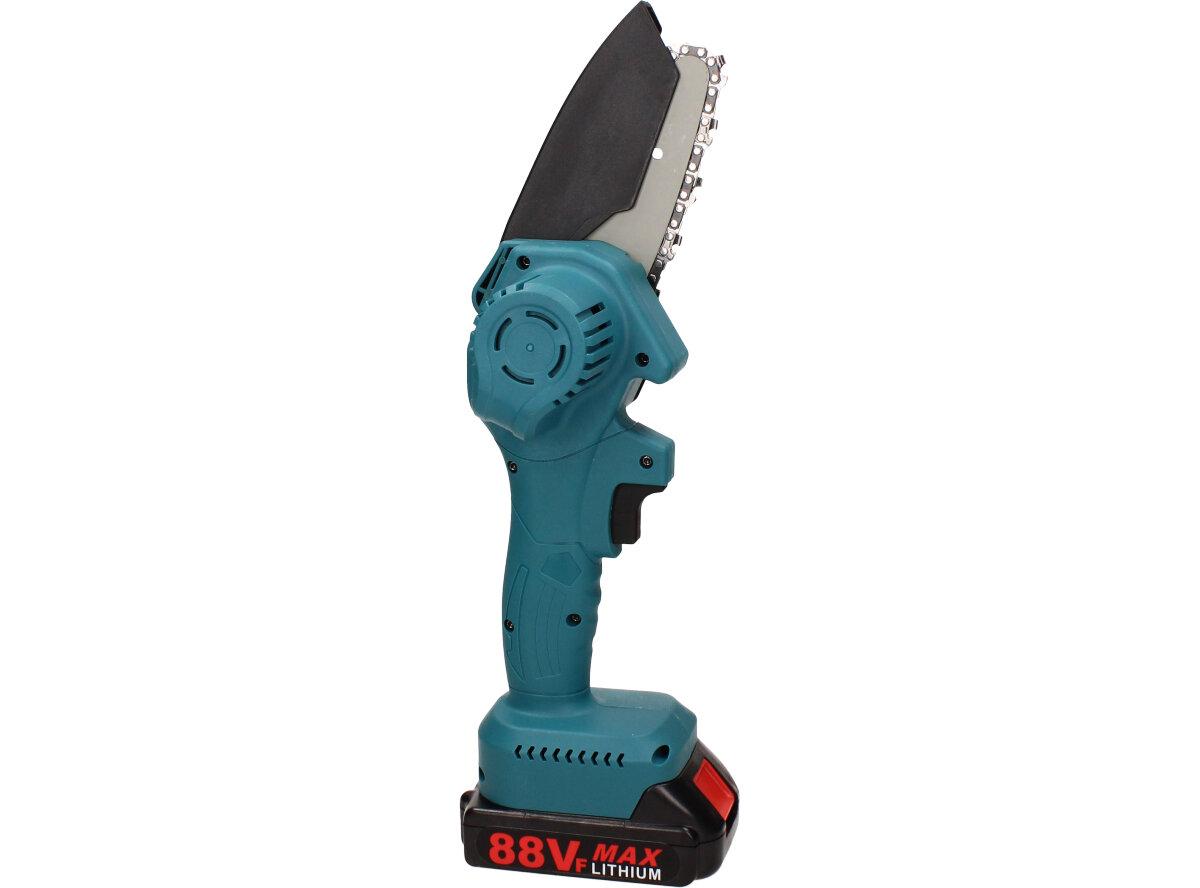 Elektrická ruční pila je vhodná pro zahradnictví a proto by neměla chybět v žádné kůlně. Snadno s ní prořezáte keře, tůje, odříznete větev a mnoho dalšího. Je zde přidané také tlačítko bezpečnostního zámku, které zabrání nechtěnému spuštění. Tato pila se vyznačuje vysokou tvrdostí řetězu a nízkou hmotností, díky které ji můžete používat pouze jednou rukou. Měděný motor zajistí silný výkon a nižší spotřebu energie, to následně zvyšuje efektivitu Vaší práce. Ergonomicky tvarovaná rukojeť poskytne pohodlné a pevné uchopení. Můžete si také nastavit i rychlost řezání, klasickým stlačováním spíneče. Spolu s pilou obdržíte v balení 2x Li-ionovou baterii 7500mAh