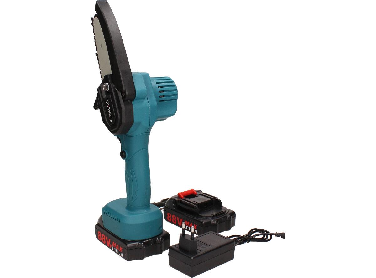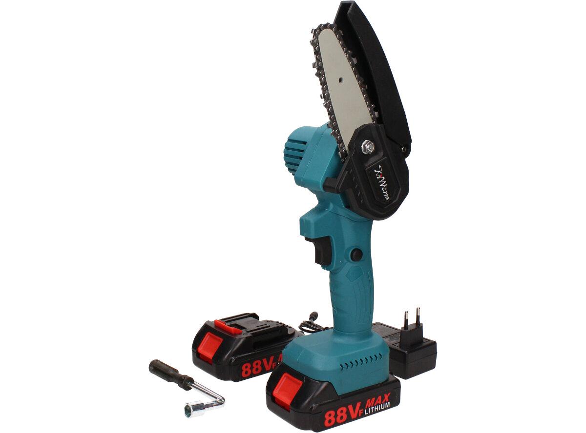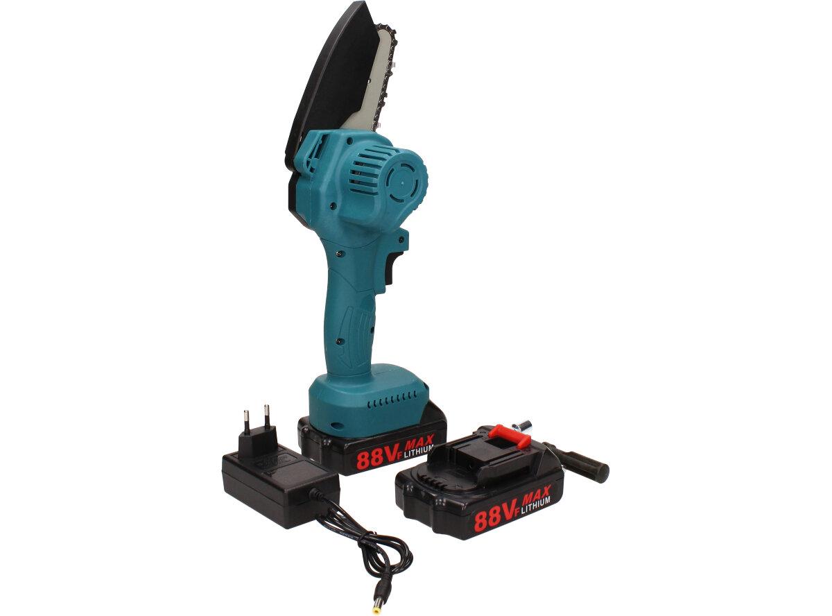 Elektrická ruční pila je vhodná pro zahradnictví a proto by neměla chybět v žádné kůlně. Snadno s ní prořezáte keře, tůje, odříznete větev a mnoho dalšího. Je zde přidané také tlačítko bezpečnostního zámku, které zabrání nechtěnému spuštění. Tato pila se vyznačuje vysokou tvrdostí řetězu a nízkou hmotností, díky které ji můžete používat pouze jednou rukou. Měděný motor zajistí silný výkon a nižší spotřebu energie, to následně zvyšuje efektivitu Vaší práce. Ergonomicky tvarovaná rukojeť poskytne pohodlné a pevné uchopení. Můžete si také nastavit i rychlost řezání, klasickým stlačováním spíneče. Spolu s pilou obdržíte v balení 2x Li-ionovou baterii 7500mAh