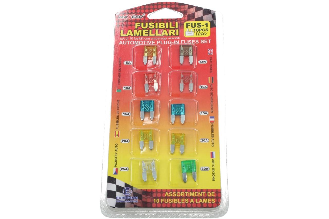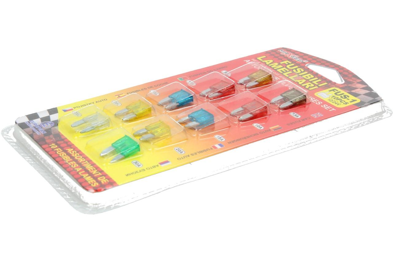 Pojistky do auta 10ks ve jmenovité hodotě 1x5A, 1x7,5A, 2x10A, 2x15A, 2x20A, 1x25A, 1x30A. Praktické a malé balení můžete bez problému vozit ve vašem autě. V každém případě je dobré mít alespoň jedno takové balení ve výbavě své garáže. Vhodné pro novější automobily od roku 2000