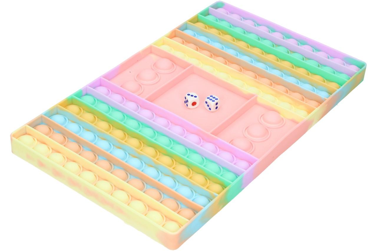 Tato desková hra POP IT je velmi podobná člověče nezlob se, místo posouvání se s figurkami a vyhazování hráčů, ale mačkáte bublinky. Součástí balení jsou dvě kostky, se kterými odehrajete celou hru. Pravidla jsou velmi jednoduchá, kolik hodíte na kostce, tolik si zamáčknete bublinek. Pokud vymačkáte všech 60 malých bublinek na hrací ploše, máte nárok na zmáčknutí jedné velké. Hráč, který bude mít zmáčknuté všechny tři velké bublinky vyhrál! po vymačkání celé jedné strany stačí hračku otočit a začít mačkat znovu.