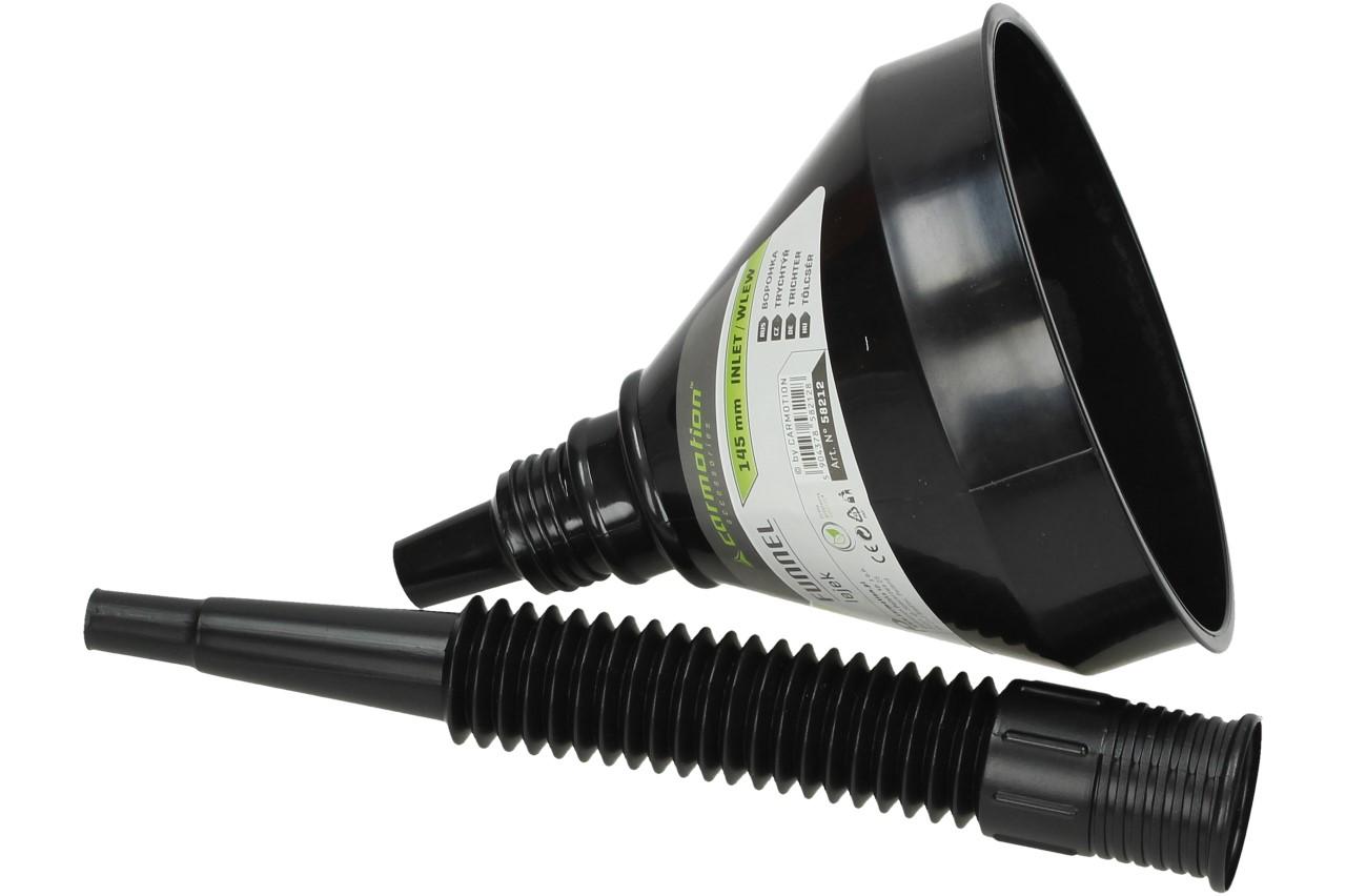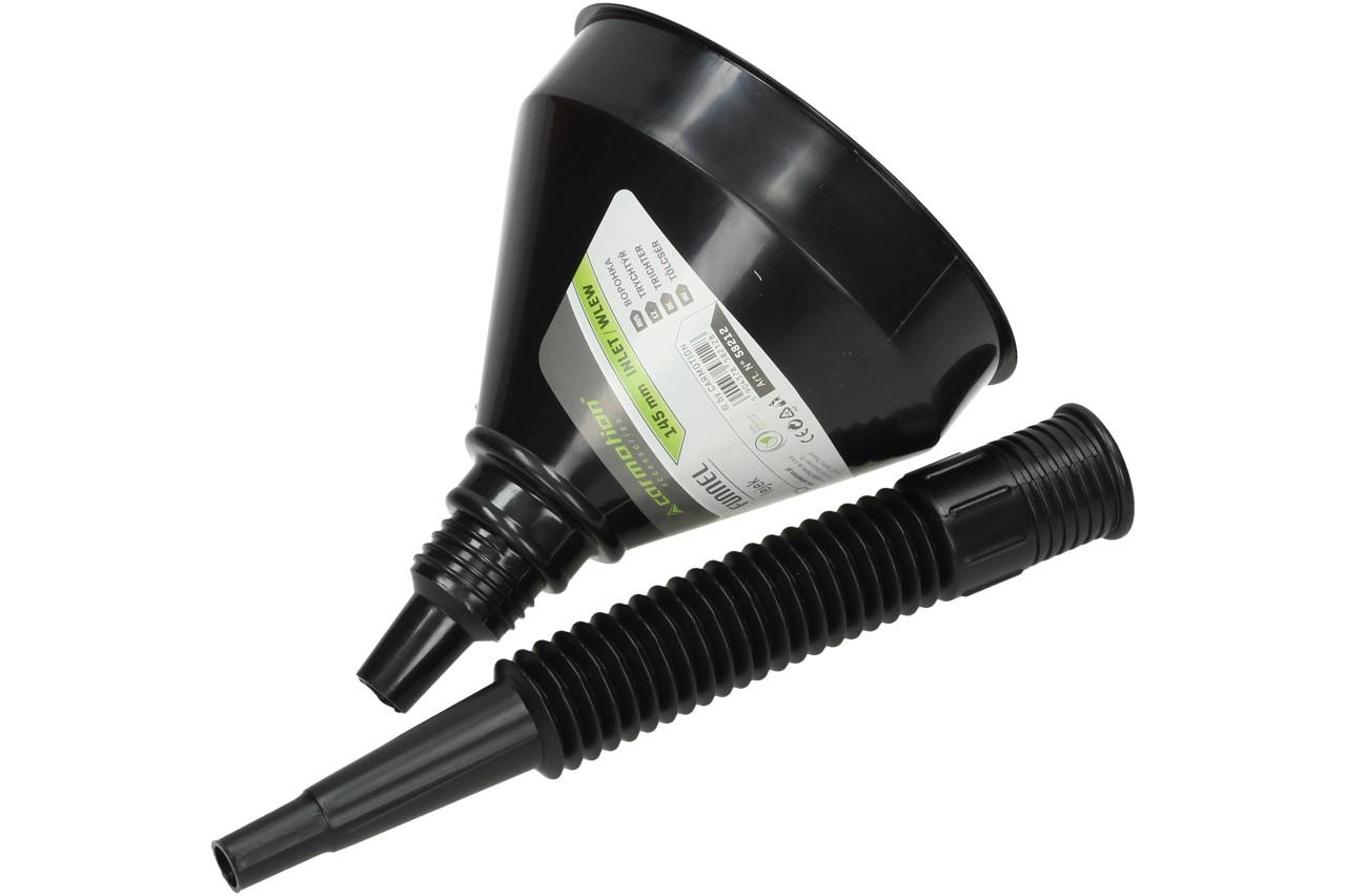 Díky felxibilní nálevce je předurčen pro univerzální použití pro jakýkoliv vůz nebo lahev. Je montovací a skládá se ze dvou kusů. Nálevka lze použít i pro ruzné druhy kanystrů. Je odolný vůči benzínu, oleji a naftě.