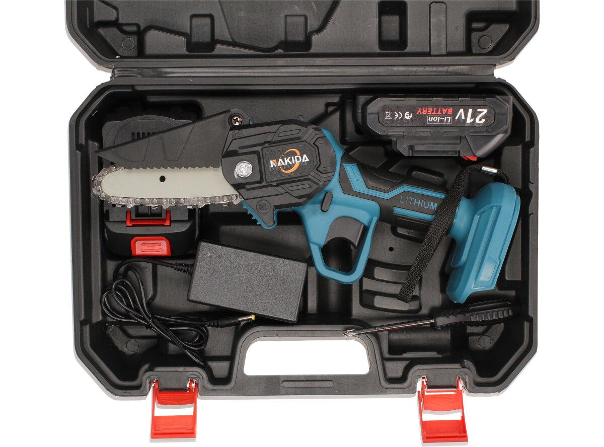 Aku pila s řetězem a s lištou o délce 6 palců zabalená v plastovém kufříku, samo…