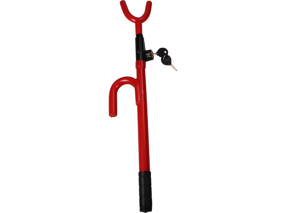 Páka na volant je klasika, která mnohdy zaskočí i zkušeného zloděje. Pokud se Vám v autě porouchá alarm nebo chcete mít stoprocentní jistotu, že Vám nikdo neukradne auto, zatím co je bez dozoru mimo kamerový systém, doporučujeme zvážit koupi této páky. Na zadní straně obalu naleznete návod, jak páka funguje a společně s ní obdržíte dva klíčky.