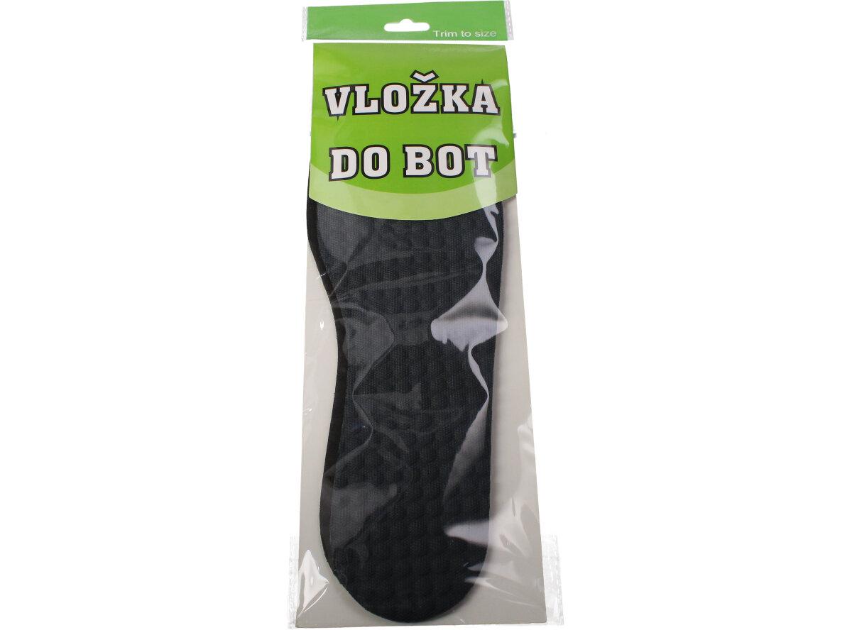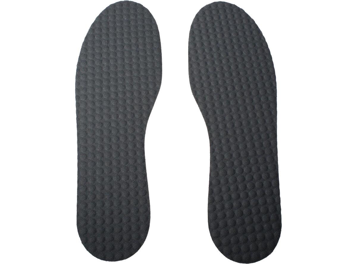 Masážní vložky do bot černé 2ks jsou vyrobeny z černé latexové pěny s aktivním uhlím a tkaninou viskózy. Vložky mají protizápachovou a antibakteriální úpravu, která může prodloužit životnost vašich bot. Můžete je tak vložit do sálové obuvi, vašich oblíbených bot na procházku, ale i do lodiček a mokasín. Vložky jsou univerzální a lze je zkrátit nůžkami, tak aby odpovídali tvaru vaší nohy a bot.