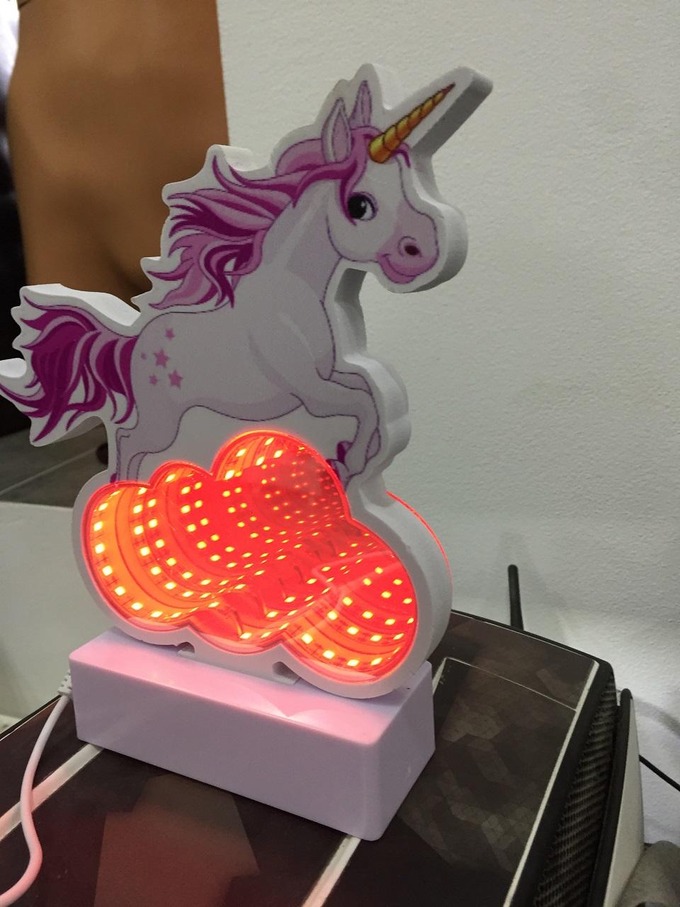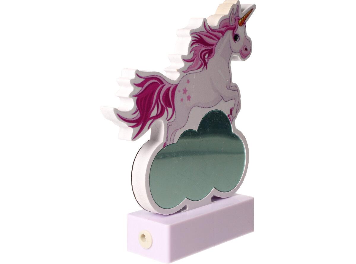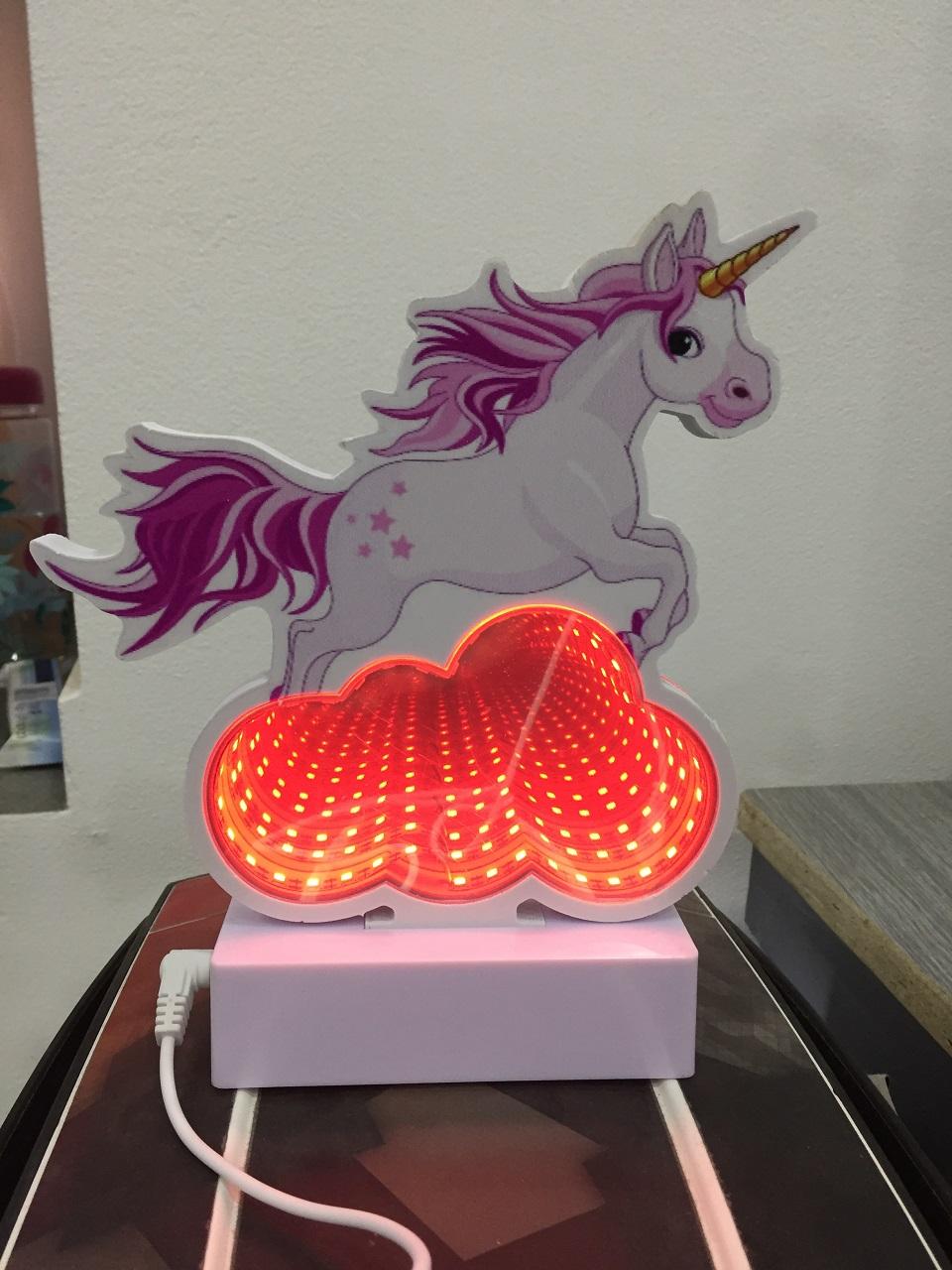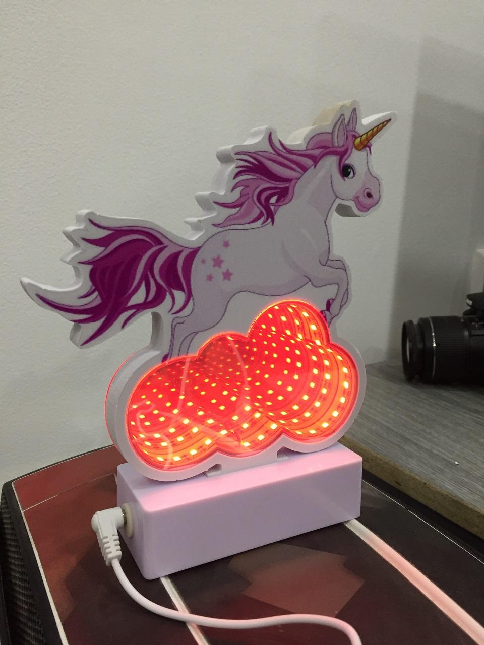 3D USB Lampa Jednorožec Na Mraku Bílý je ve tvaru koně, který skáče přes světélkující mrak, lampa je připojená přes USB kabel, tudíž se dá připojit na USB adaptér rovnou do zásuvky a nebo jakémukoliv zařízení, které má usb výstup. Může být také napájena třemi AAA bateriemi, tudíž si lampičku můžete vzít i na cesty.