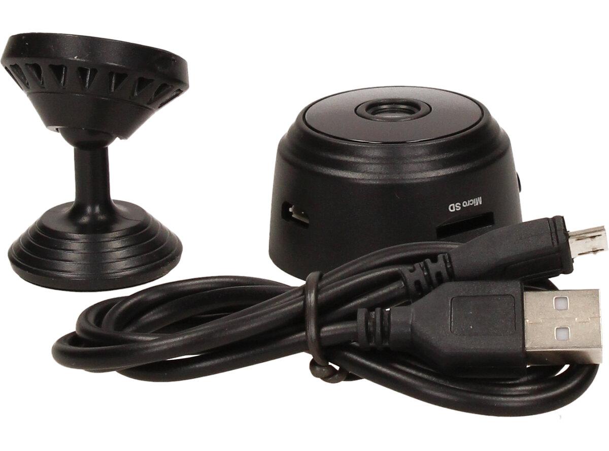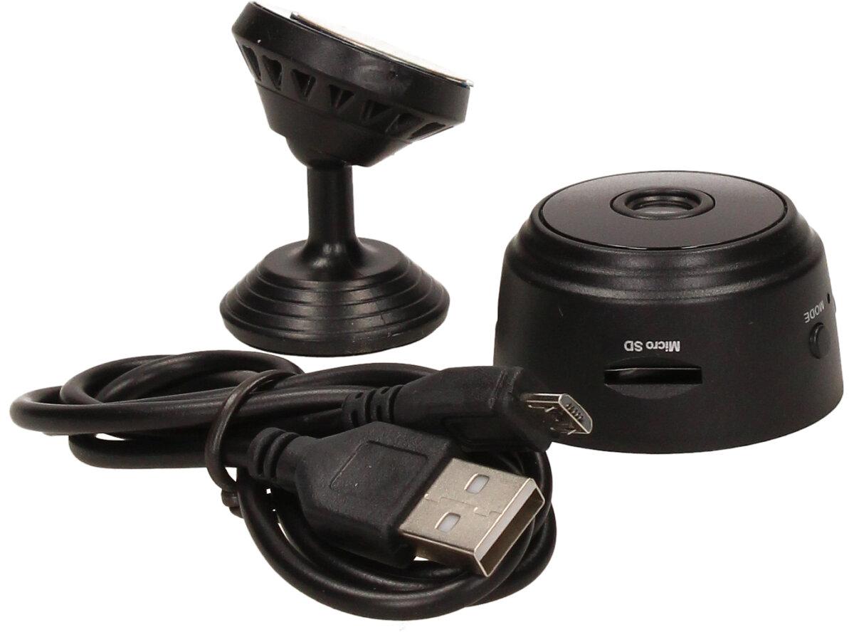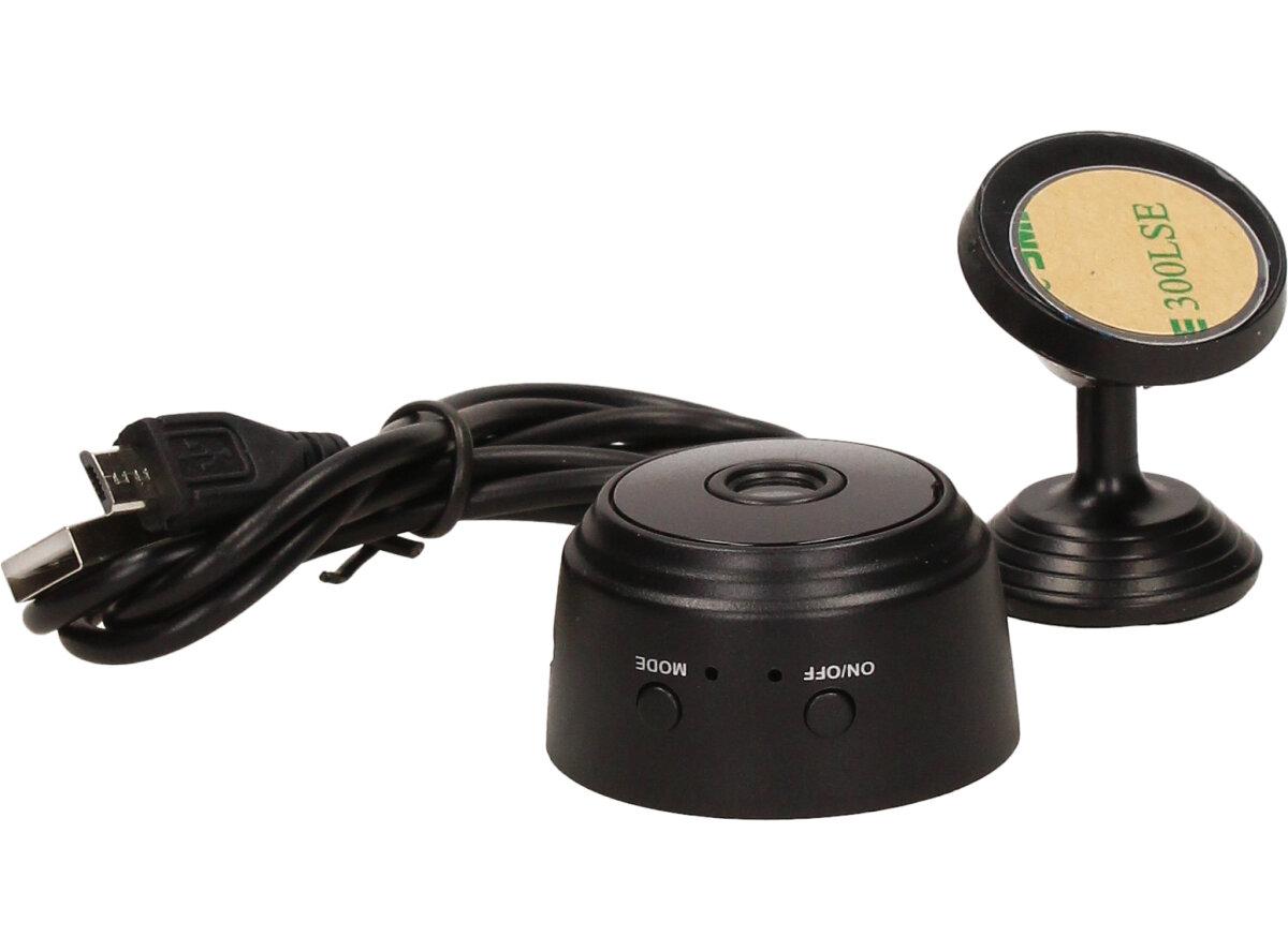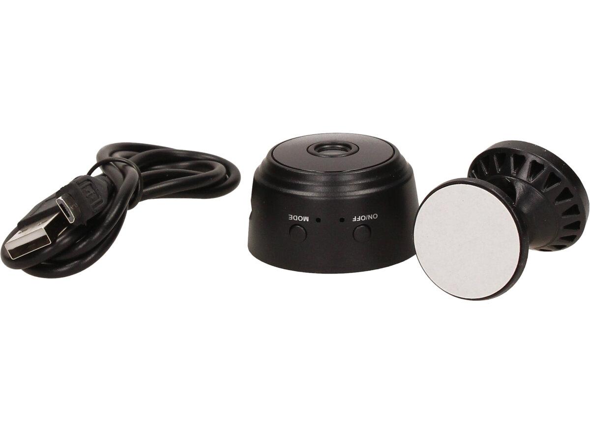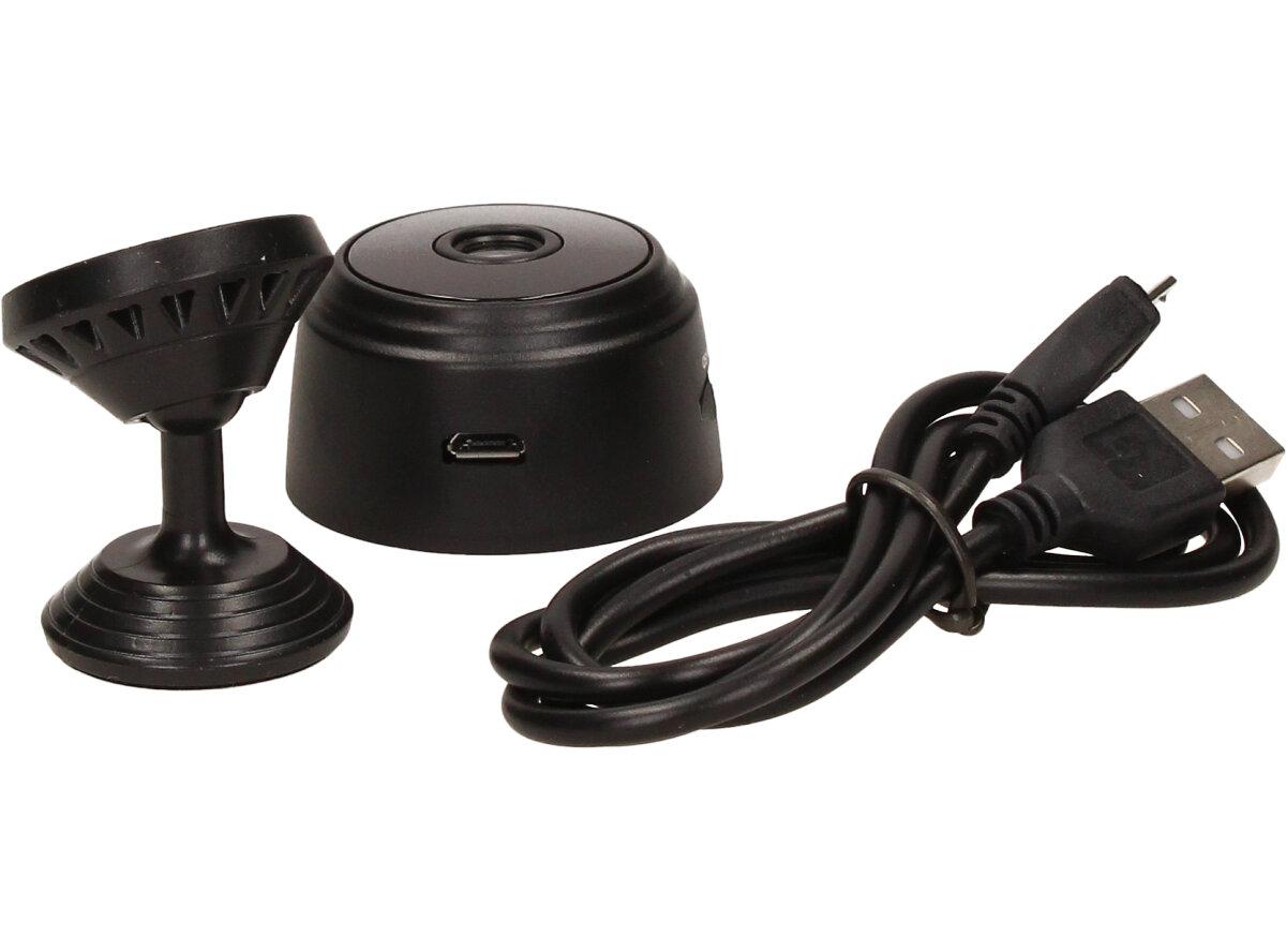 Kameru lze také využít jako dětskou chůvičku. Miniaturní a nenápadná kamera s magnetickým úchytem Kamera má průměr 3,5 cm, takže ji lze umístit do každého rohu či na jakýkoliv kovový povrch. Lze ji využít jako bezpečnostní kameru v kanceláři, doma, v autě atd. Super noční vidění Zabudované infračervené přisvícení! Vynikající schopnost záznamu za zhoršených světelných podmínek; dosah nočního vidění je až 5 metrů. Detekce pohybu a bezpečnostní sledovací systém. Dlouhá výdrž baterie. Vestavěná dobíjitelná baterie, rovněž fungující při nabíjení.