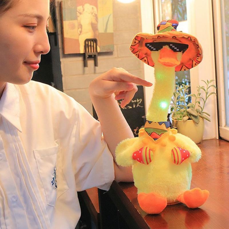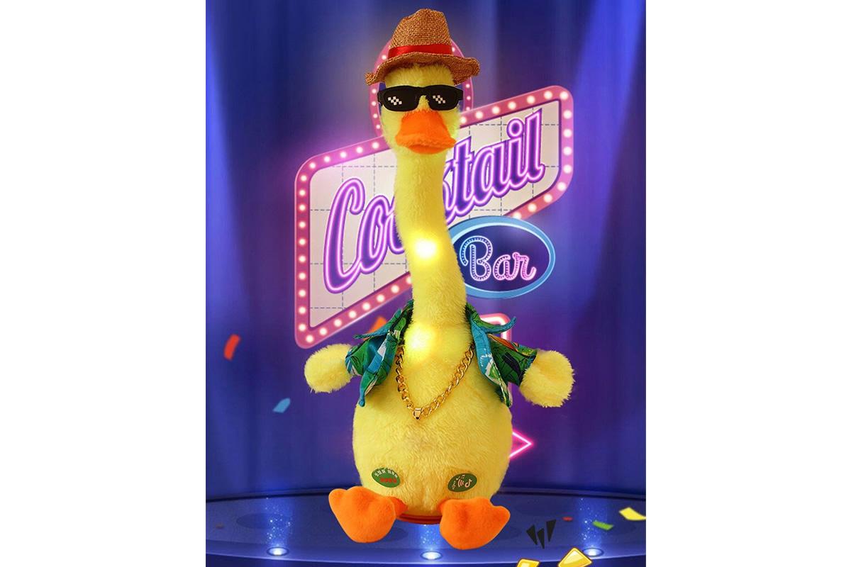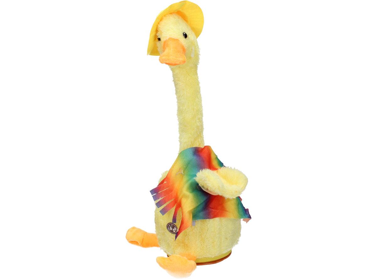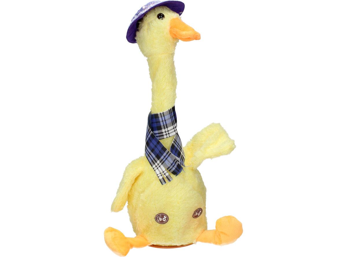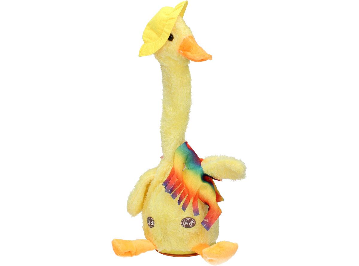 Hračka Mluvící a tančící kachna je nabíjecí. USB kabel je součástí balení. Veselá tančící kachna opakuje vše co jí řeknete, svítí a nebo můžete pouštět muziku a to až 120 skladeb.