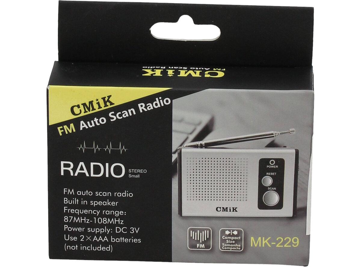 Automatické ladění, zabudovaný reproduktor, frekvence 87 - 108 Mhz, na dvě AAA tužkové baterie