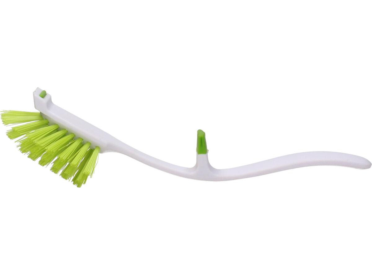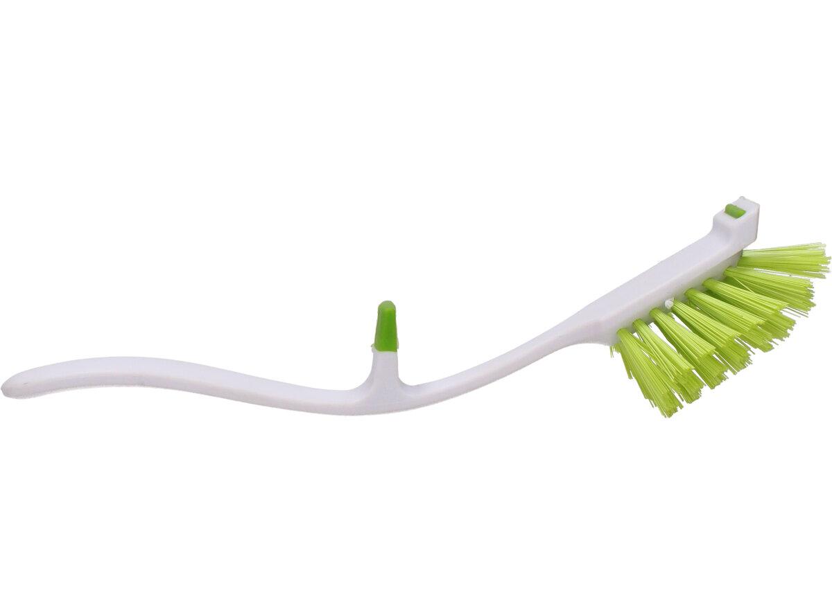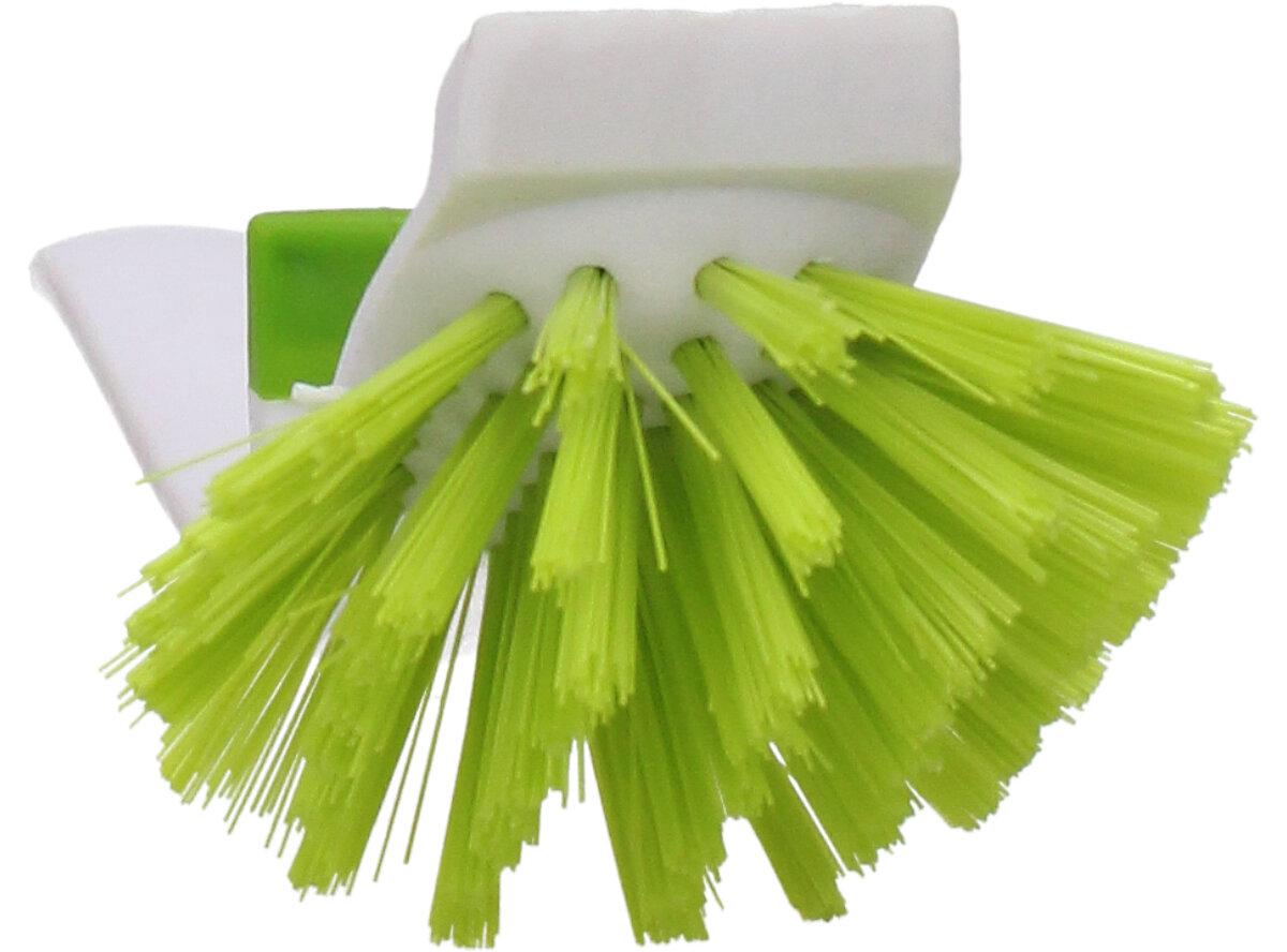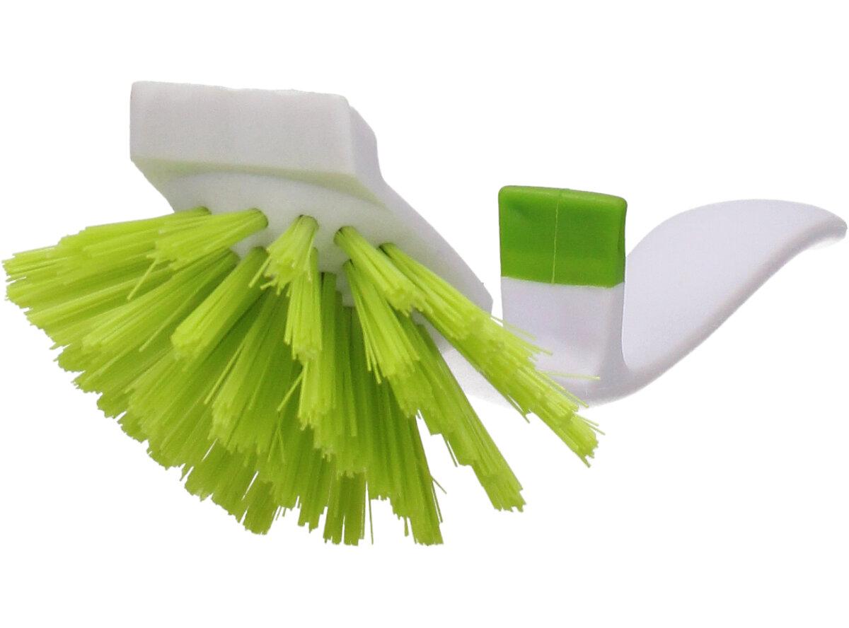 Kvalitní kartáč na drhnutí zelený s aerodynamickou rukojetí a navíc se dá pověsit třeba na hranu kýblu