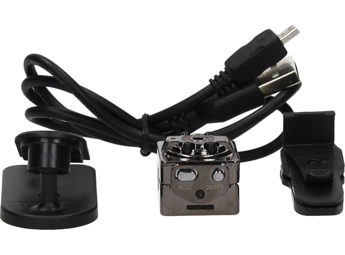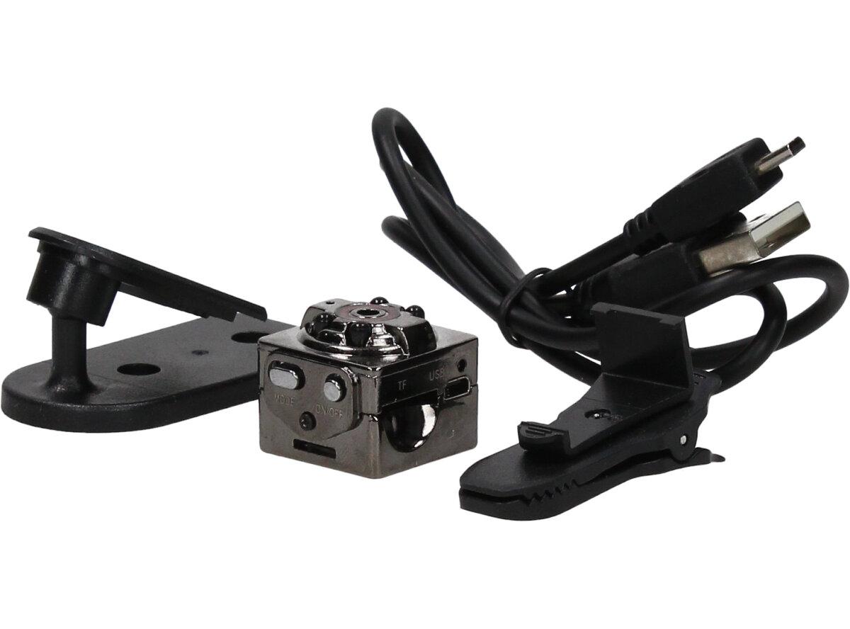 - Součástí balení je mini DVR kamera, kabel USB / TV 2 v 1, držák, klip a anglická uživatelská příručka