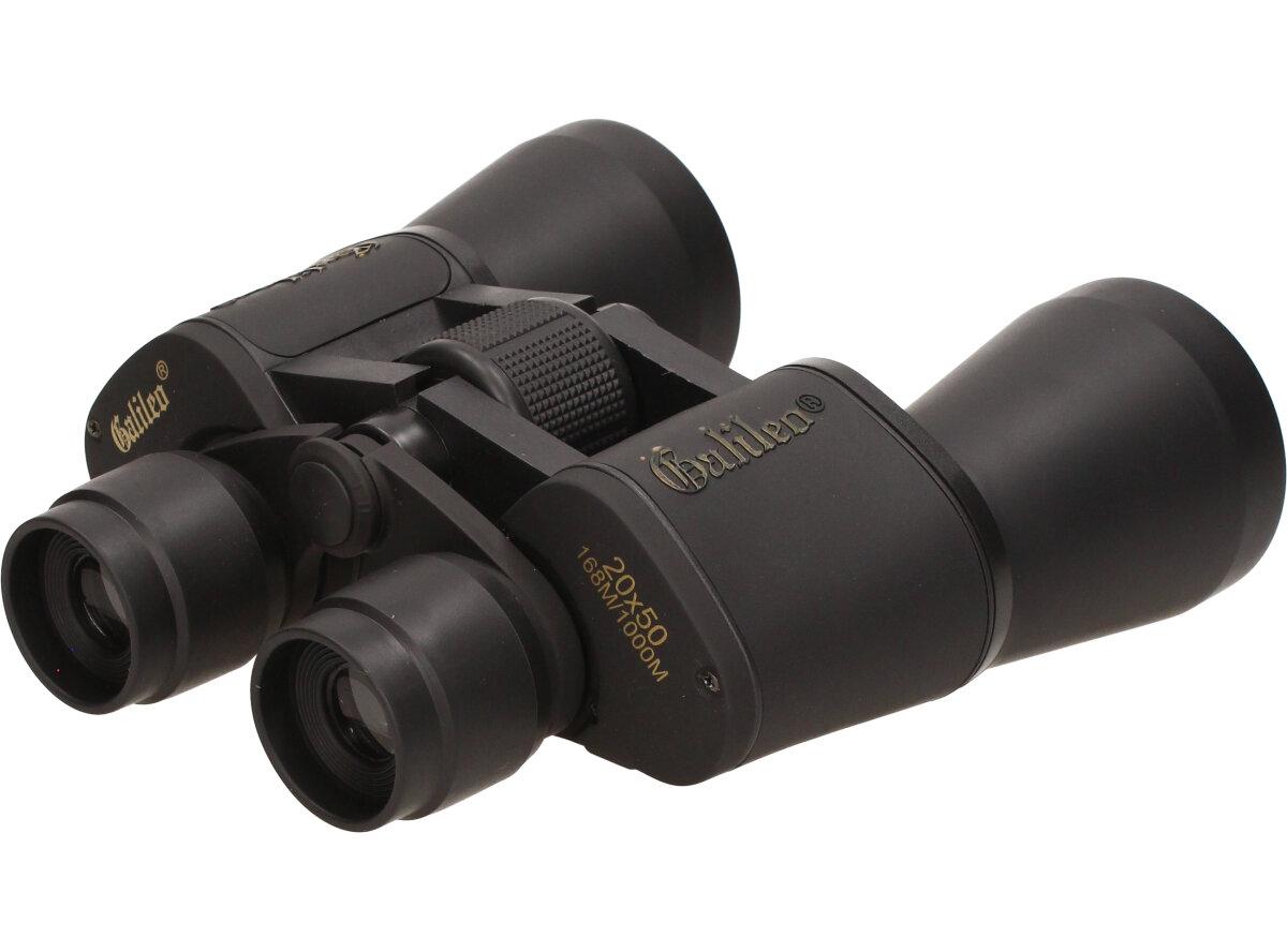 Dalekohled Galileo Binoculars 20x50 168M/1000M má perfektní a pogumované tělo, odnímatelné gumové krytky na všechny čočky, šňůrku na krk a pouzdro pro přenášení. Dalekohled Galileo disponuje 20x zvětšením a průměrem čočky 50mm s funkcí zaostření.