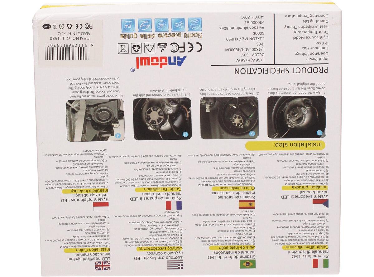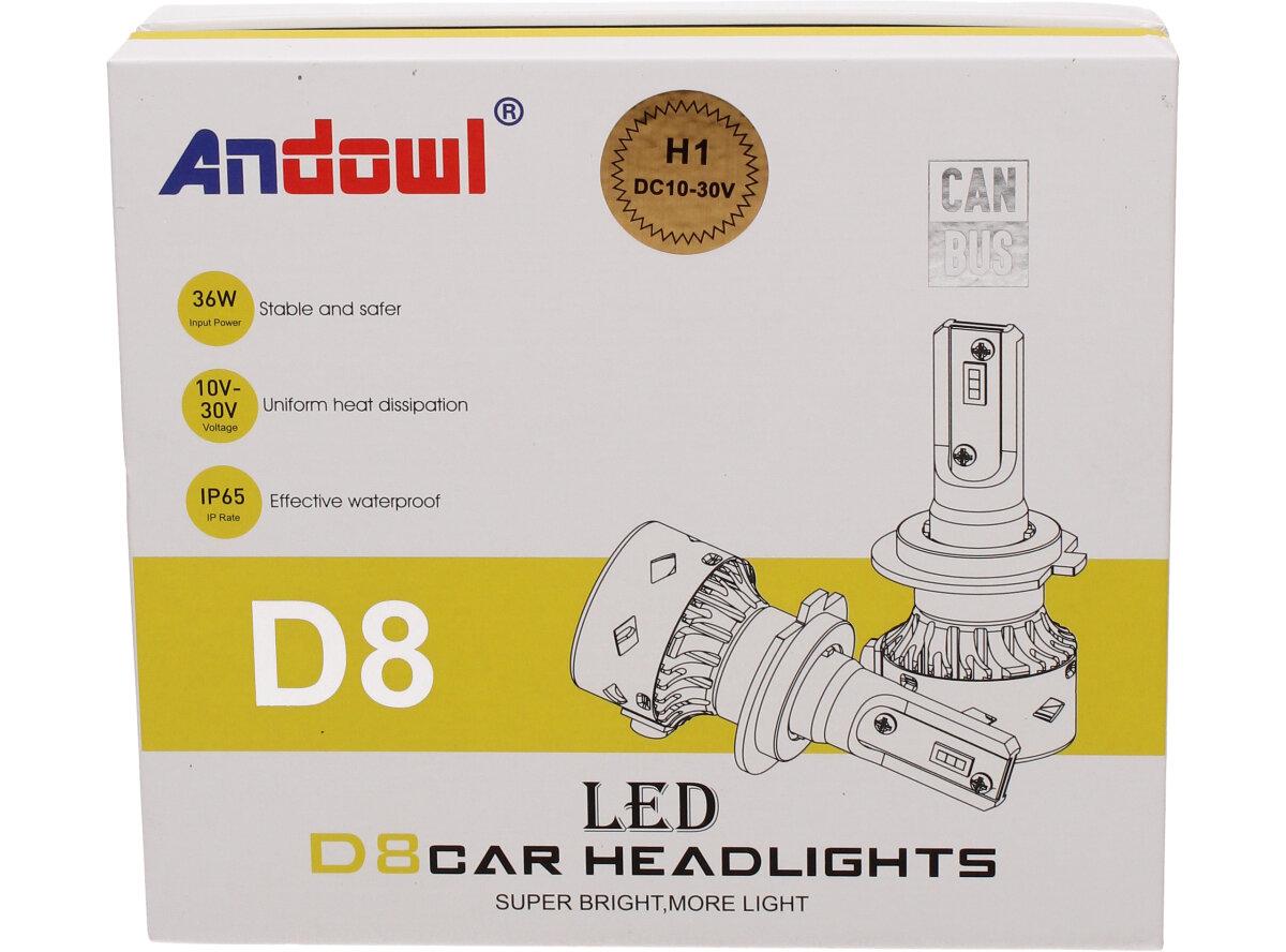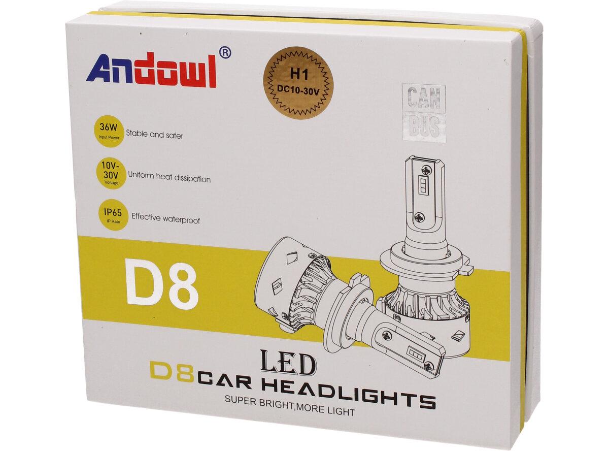 Sada dvou LED žárovek ANDOWL D8 H1 CANBUS 10-30V 36W Vám poskytnou jasné bílé světlo a velmi dlouhou životnost 50 000 hodin a to i při otřesech vozu, častém zapínání a vypínání, což je velká výhoda oproti klasickým žárovkám. Žárovky jsou vyrobeny tak, aby jejich instalace nebyla náročná.
